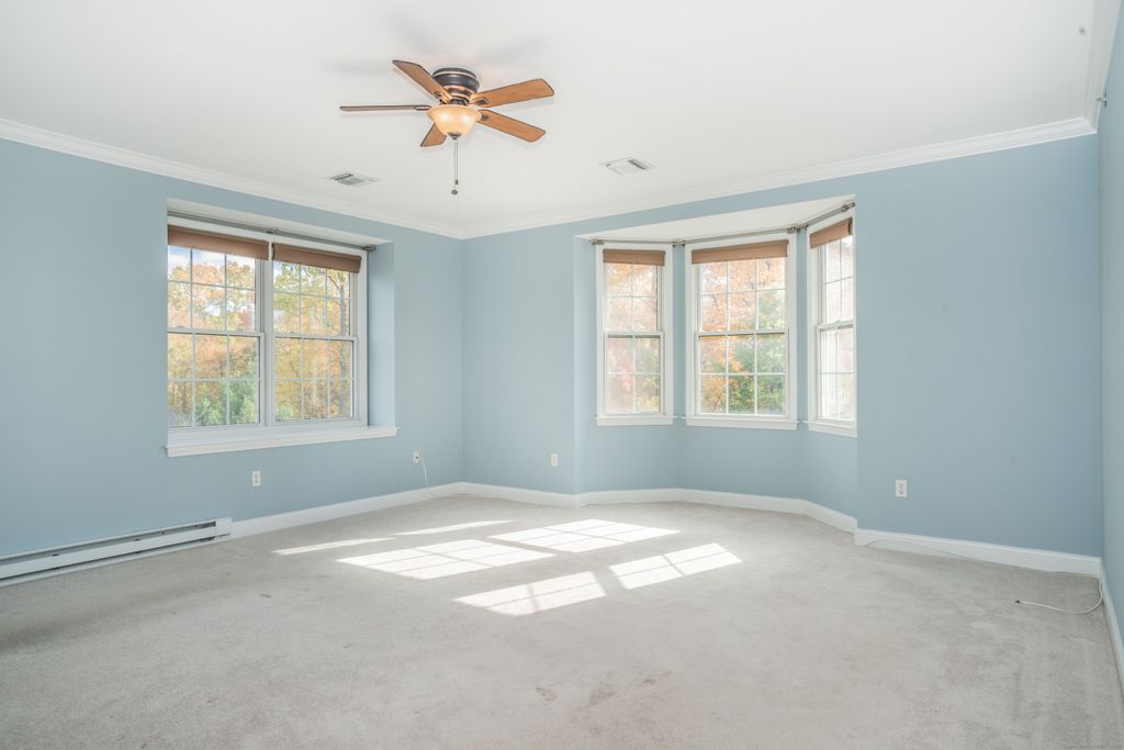 Fabulous 3rd floor END unit at 25 Cassandra Blvd in West Hartford located across from the Reservoir. The private balcony off the living room has the perfect spot to enjoy this glorious weather and stunning Fall foliage. This floorpan has the largest living room with a gas fireplace, a sunny dining area with a large window overlooking the view, and a gorgeous huge kitchen with plenty of cabinets and counter space. In the hallway is an office and a separate laundry room. The primary bedroom in this plan has plenty of room for all your furniture, plus a large walk-in closet and a spacious full bath with a tub and shower. The 2nd bedroom is also generous and there is a 2nd full bath. This unit has a new HVAC system for the heat and cooling. Make sure to make an appt soon! IT'S A GEM!
