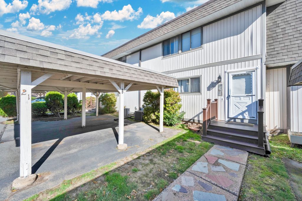 This approximately 2,000 square foot Townhouse offers 3 levels of spacious living area ,with three bedrooms, two and a half bathrooms. The open concept layout features a large living room area with sliders to a balcony. An eat in kitchen is equipped with appliances, ample cabinets and counter space, ideal for the culinary enthusiast. The primary bedroom boasts a private bathroom , and, the spacious walk in closet. The two additional bedrooms share access to the full bathroom in the hallway. The home also includes a convenient half bathroom on the main level and the finished lower level with sliders perfect for a rec room or play room area. This townhouse presents a comfortable and practical living option, suitable for a variety of household compositions. The location provides access to local conveniences, such as shopping, dining, Bradley Airport, along with nearby access to the canal bike and walking trail.. You will appreciate the Carport, providing dedicated parking. There's also additional visitor parking nearby