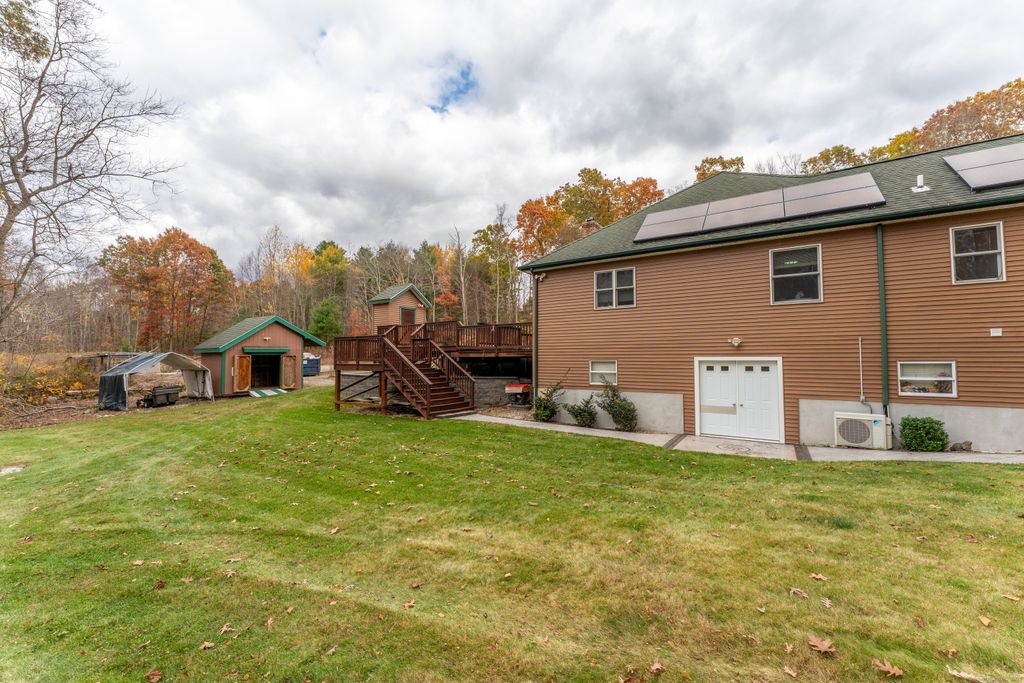 Experience the best of country living and modern design, all on 10 private acres, ideal for hunting and outdoor recreation. This stunning single-level ranch, with a 3 car garage offers an open-concept floor plan, filled with natural light, featuring gleaming hardwood floors, spacious kitchen with stainless steel appliances and a 32 x 27 great room - perfect for entertaining or family gatherings. Home offers a large primary suite with walk-in closet and a private full bath, complimented by 2 additional generously sized bedrooms and a 2nd full bath. Stay cozy with 2 wood stoves as a supplemental heat source or enjoy year-round comfort with 2 mini splits for heating and cooling. Home boasts 39 energy efficient solar panels, which are owned and paid-in-full! Home also offers 2 oil tanks, a 1500 gallon septic tank and a generator hookup for peace of mind. Outside, relax by the above-ground pool, entertain on the large deck, and take in the tranquility of your private retreat. This Canterbury property delivers it all!