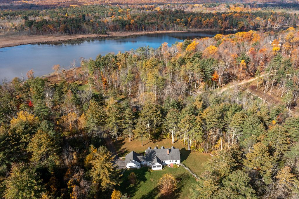 Introducing: Lakes Bend. Twin Lake beckons. Drive down a quiet, largely unknown street in one of the most desirable towns in Litchfield County. Set back on a level four-acre lot, this home is all about its location, just across the street from beloved Lake Washinee (one of the Twin Lakes). Enjoy seasonal views and access to a shared beachfront, owned by only a handful of neighbors. Lovingly built in 2004, this three-bedroom, 2.5 bath home makes it easy to embrace the peaceful life that beckons. Upon entry, a foyer with soaring ceilings welcomes you into the living room, where a wood-burning fireplace becomes the perfect companion for chilly fall evenings. The open concept layout connects the living space to a kitchen with granite countertops and ample workspace for creating meals. The dining room, conveniently located just off the kitchen, provides a dedicated area for gathering on holidays or hosting friends. An office with custom built-in bookshelves offers a quiet place to retreat and regroup. The first floor also features a generously sized primary bedroom ensuite, complete with a large soaking tub, shower, and double vanity. A mudroom connects the main house to a functional two-car garage, adding convenience and practicality. Upstairs are two additional bedrooms and a central full bathroom, along with plenty of well-designed closet space.