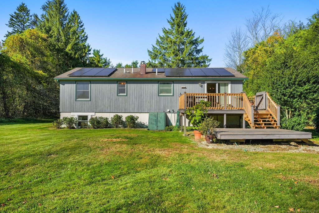 Welcome home to this wonderfully maintained and versatile Raised Ranch in beautiful Morris. You're immediately greeted by an expansive and non-traditional large and sunny open foyer to get settled as you arrive. Head upstairs to your partially open living room and dining room space with hardwood floors surrounded by windows. The eat-in-kitchen features a gas range with hood, stainless steel appliances, custom cabinets, a large island with multiple sitting areas to entertain or feast and through the dining room are sliders to a back deck to continue the entertaining. Head down the hallway on the main floor to two guest rooms with hallway bathroom and a large primary suite with attached full bath. Continue your tour downstairs to find a huge additional bedroom with double closets, a nicely sized rec room which could be another living room space, a third full bathroom and an unfinished workshop space with washer and dryer which can easily be finished for additional living space. Head outside to the over 3 acre beautifully lush property surrounded by trees and nature. Don't miss the barn and shed in the back of the property and two car detached garage for even more storage or to park the cars. This home and property are truly a tucked away and private oasis with tons of potential to make your own or enjoy as is. Roughly 2 hours from NYC and less than 10 minutes to Bantam Lake and Bantam Market. Your slice of heaven awaits!