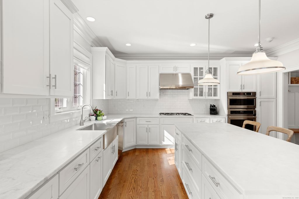 This light and bright University area home is located on a picturesque, tree-lined street w/sidewalks, just minutes away from the bustling downtown & Metro North train station & walking distance to a sought after local elementary school. This better-than-new residence, completed in 2016 & spanning 4,000+ sq ft over 3 beautifully finished floors, features high-end custom moldings, designer finishes, elegant living spaces & pristine hardwood floors. The heart of the home is the stunning eat-in kitchen, equipped w/honed Carrera marble countertops, a large center island, professional-grade appliances & abundant storage. Adjacent to the kitchen is a spacious custom mudroom and a half bathroom. The family room, central to the home's design, boasts hardwood flooring, a coffered ceiling, gas fireplace, and offers picturesque views w/direct access to the large, private & fully fenced backyard w/beautiful patio & vegetable garden. There is also an expansive dining room w/ coffered ceiling & moldings, and a private home office or living room w/French doors on the main level. The upper level is home to a luxurious primary suite complete w/ a spa-like bathroom, his and hers walk-in closets, hardwood flooring, and a tray ceiling. Additionally, there are 3 more bedrooms, each featuring custom closets and hardwood floors, along with two addit'l full baths & a laundry rm. The lower level features a gym, large entertaining area, full bath & custom built ins and Murphy bed. Gas, city, water.