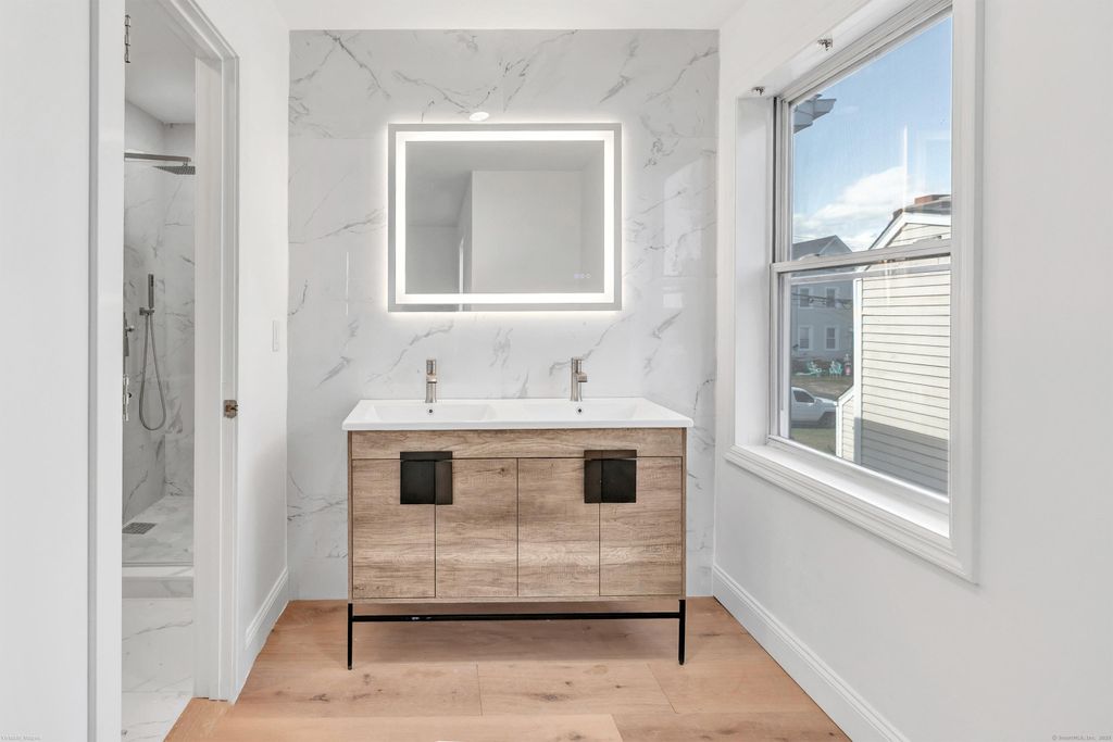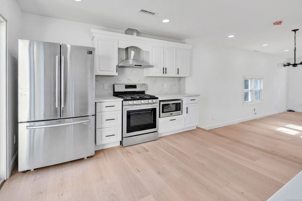 Welcome to this beautifully remodeled upper-floor unit in a charming multi-family home, ideally located just steps from Norwalk Hospital, SoNo's vibrant restaurants and shops, and the train station for easy commuting. This light-filled apartment blends modern comfort with thoughtful luxury details throughout, including solar panels for energy efficiency, new oak floors and open living space, modern kitchen with quartz counters, stainless steel appliances and sleek finishes, updated bathrooms with designer touches. Street parking, small backyard shared with lower unit, private deck with stunning view. Laundry in unit, most appliances are brand new. Keyless entry being installed. A minimum of one year lease required. One pet allowed with restrictions.