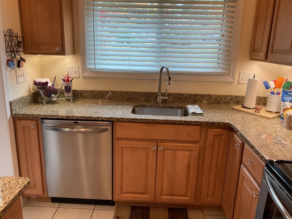 Beautiful end unit at Woodlake Community in Woodbury! Kitchen with stainless steel appliances and granite countertops plus tile floors. Hardwood floors on first level in Dining and living area with sliders to a deck overlooking the wooded back area and lake. This unit features upgraded 2 full plus 1 half bathrooms plus 2 bedrooms with plenty of closets. Laundry closet with shelving is on the upper level for convenience. Large finished basement, 2 rooms, carpeted with another slider walk out to the backyard area. Can be used as a family room or office space. In addition, water and sewage charges are included in HOA.