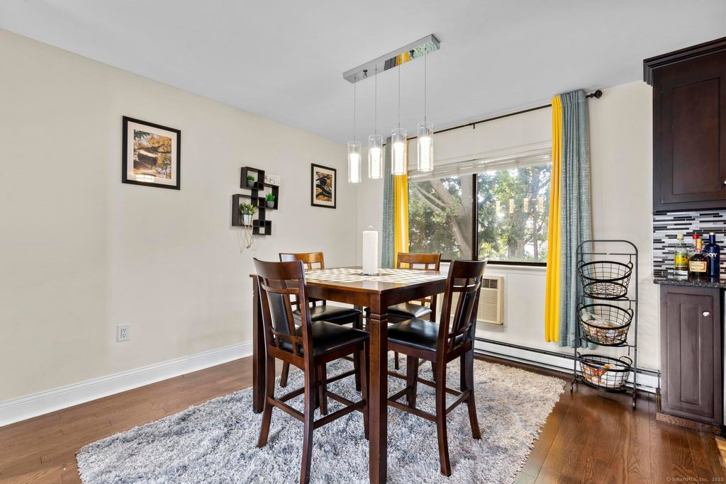 This beautifully maintained two-bedroom townhouse offers the perfect blend of comfort, style, and convenience within the sought-after Greenway Condominium community. Spanning three levels of living space, the home welcomes you with a bright open-concept main floor featuring brand-new hardwood floors, fresh paint, and generous natural light throughout. The kitchen boasts granite countertops, stainless steel appliances (including a wine refrigerator), and an easy flow into the dining and living areas - ideal for everyday living and entertaining. A convenient half bath completes the main level. Upstairs, you'll find two spacious bedrooms, including a primary suite with a walk-in closet, along with an updated full bath featuring modern tilework, new fixtures, and vanity. The finished lower level offers exceptional flexibility - perfect for a family room, home office, or gym - and includes a walk-out to the rear patio plus in-unit laundry. Additional highlights include an attached garage, an exterior parking space, and access to Greenway's professionally managed grounds and in-ground pool. Conveniently located just minutes from shopping, Metro-North, and I-95, this home combines low-maintenance living with an unbeatable Stamford location.