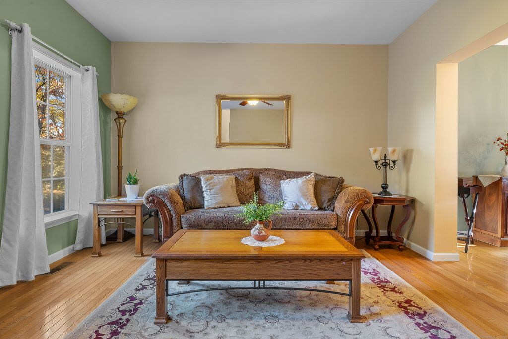 Welcome to this beautifully maintained colonial set on a private, wooded lot surrounded by the colors of every New England season. The home greets you with timeless curb appeal-double-door garage, a welcoming front porch, and a graceful arched window that fills the foyer with natural light. Inside, gleaming hardwood floors flow through an open-concept main level featuring a granite-topped kitchen with maple cabinetry, stainless steel appliances, and a center island that connects seamlessly to the family room and dining area. Enjoy cozy evenings by the fireplace or step outside through the sliding glass doors to a spacious deck overlooking peaceful wooded views. Upstairs, the primary suite features generous proportions, abundant sunlight, and hardwood flooring throughout. Additional bedrooms provide flexibility for guests, a home office, or creative space. The home includes a full basement, an attached two-car garage, and a paved driveway with extra parking. Surrounded by mature trees and landscaped grounds, this residence blends comfort, privacy, and everyday convenience in one exceptional setting.