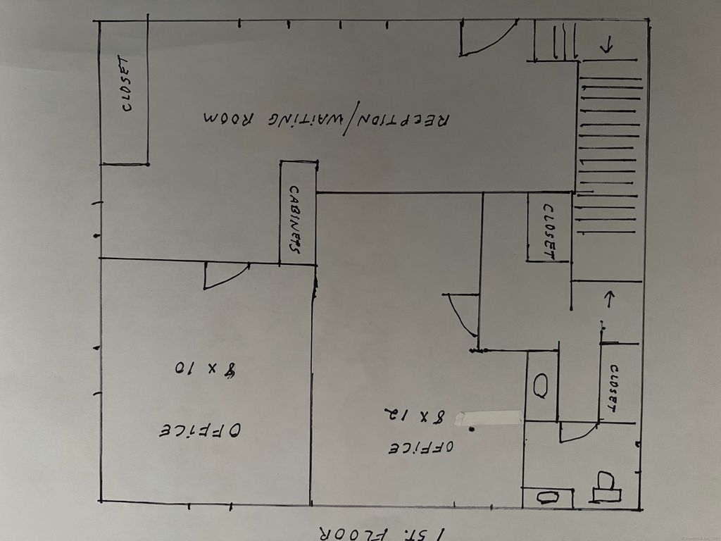 5 offices- 2 on the first floor with waiting/reception area and half bath. 3 offices on second floor with large spacious waiting room. Located in a quiet residential in a Tudor style house. Parking lot in rear with on street parking. Outdoor lighting. Close to I95 and Metro Railroad Station. $3,000 per month. References and security. Log with office