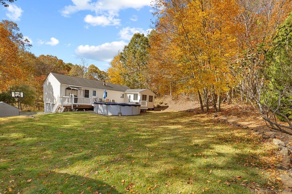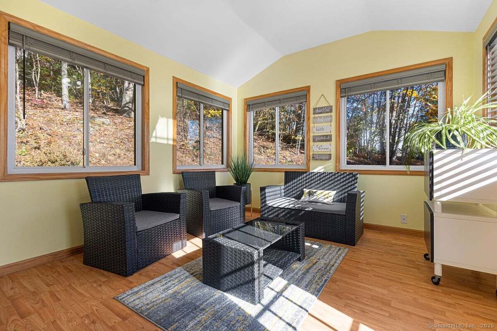 Welcome to this beautifully updated raised ranch, surrounded by nature and offering a warm, inviting open floor plan. The remodeled kitchen features vaulted ceilings, quartz countertops, new stainless steel appliances & flows seamlessly into the dining and living areas. The living room is filled with natural light through a large picture window, creating a bright and welcoming space along with hardwood floors. Off the dining area is a 4 seaon room also with vaulted ceilings, laminate flooring with an abundance of natural lighting. The main level includes a primary bedroom with an updated full bath & double closets, along with 2 additional bedrooms & a 2nd updated full bath. The newly finished lower level provides a spacious family room with new LVT flooring, a large laundry room, additional storage, and direct access to the two-car garage. Enjoy the beautiful views from your 4-season room and step outside to a new spacious Azek deck, leading down to an above-ground pool with a fantastic yard, ideal for gatherings & summer fun with serene surroundings & nature views in every direction. This home is part of the Grannis Lake Assoc, with a walking path to the lake, where you can enjoy fishing, kayaking & scenic walking. This home also features a secondary heating system with a pellet furnace that efficiently heats the entire house, offering comfort and energy savings throughout the colder months. Recent updates include hot water heater, driveway, deck, landscaping, lower level.