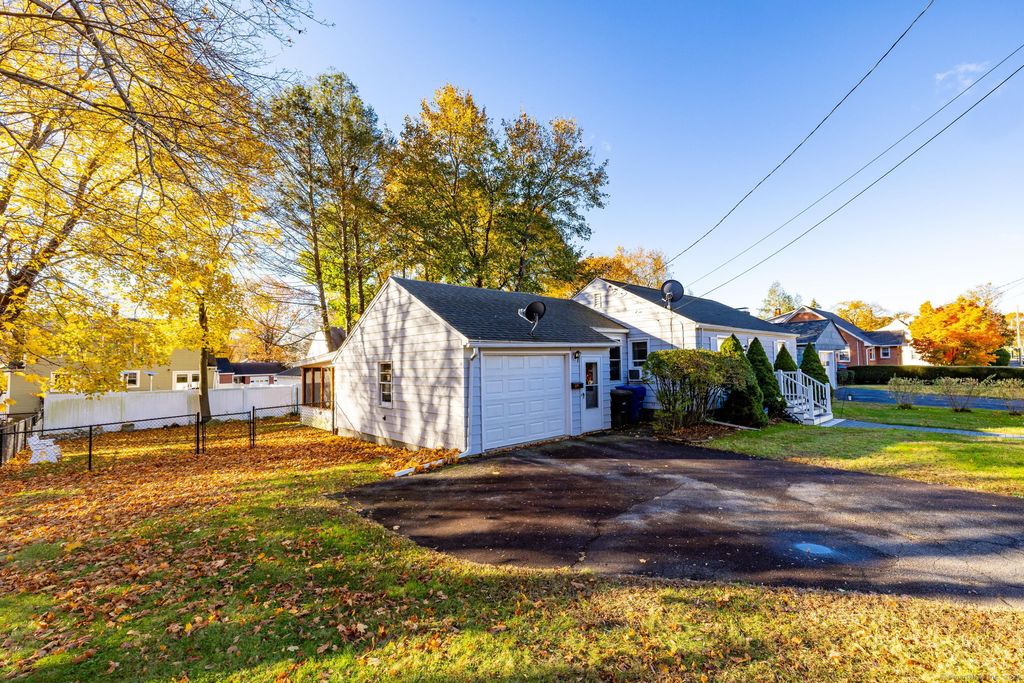 Welcome to this delightful 2-bedroom, 1-bath ranch, perfectly tucked away at the end of a quiet cul-de-sac with a beautiful, fully fenced private yard! Bursting with charm and thoughtful updates, this well-maintained home invites you in with a bright, sunny living room that flows effortlessly into the updated eat-in kitchen-showcasing gleaming granite countertops, stainless steel appliances, and a stylish backsplash. Both bedrooms feature warm hardwood floors and ceiling fans for year-round comfort. Enjoy true peace of mind with extensive upgrades and improvements throughout: a new boiler and oil tank, newer roof, new baseboards, updated windows, a sump pump, and a security system. Custom blinds add a polished finish, while the beautifully landscaped perennial garden brings color and curb appeal in every season. Love to relax or entertain? The sun-screened porch is your happy place-perfect for morning coffee, evening unwinds, or hosting friends on those magical summer nights. Outside, the spacious, fully fenced backyard offers exceptional privacy, with this home being the very last on the block-an ideal setting for play, pets, or peaceful outdoor living. An extended driveway and walkway lead to the convenient one-car attached garage. All this, and you're just moments from shopping, restaurants, major highways, and everyday amenities-making life easy and enjoyable. This charming gem blends comfort, convenience, and character-and it's truly move-in ready. Welcome home!