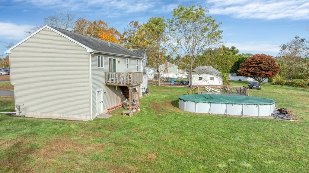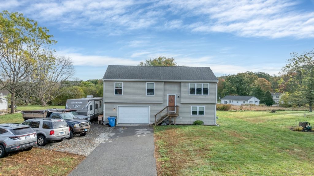 Built in 2012 on a level 1.1-acre lot along a scenic country road, this impeccably maintained 3-bedroom, 2-bath Raised Ranch offers the perfect blend of modern comfort and peaceful country charm. A spacious one-car garage, large pressure-treated deck, and above-ground pool with its own entertaining deck make this home ideal for both relaxation and summer gatherings. Inside, the open-concept main level welcomes you with a bright living room, dining area and kitchen highlighted by bamboo flooring, a ceiling fan and sliding doors that open to the rear deck. The kitchen shines with oak cabinetry, granite countertops, stainless steel appliances and a double stainless-steel sink-combining style and functionality in one inviting space. Two comfortable bedrooms feature wall-to-wall carpeting and ceiling fans, while the full bath includes a tiled floor, oak vanity and fiberglass tub/shower combo. The primary suite provides a private retreat complete with its own bath featuring a tiled floor and stand-up fiberglass shower. The fully finished walkout basement expands the living space with a large family room, Pergo flooring, laundry area, and direct access to the garage and backyard. Additional highlights include a new heating system (2023), public water & sewer and efficient natural gas heat. Conveniently located across from John M. Moriarty School and close to parks, shopping, and restaurants, this home combines country tranquility with everyday convenience.