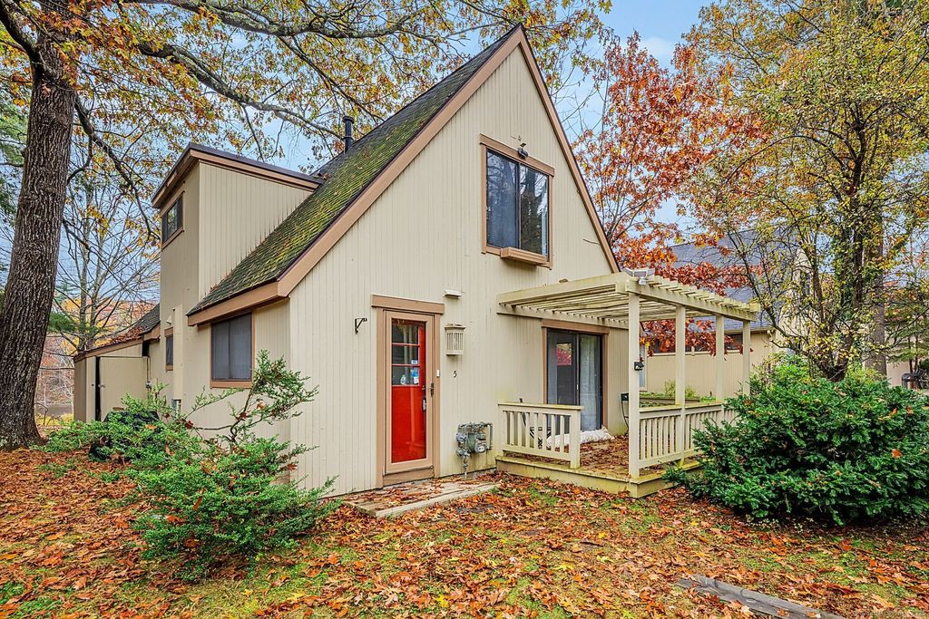 Welcome to 5 Owl Court, a charming and freshly painted home nestled in the sought-after Pond Place Planned Unit Development in Avon. This inviting 3-bedroom, 2-full-bath residence offers the perfect blend of comfort, privacy, and natural beauty, complete with a 2-car detached garage. New central air system installed in 2025.There are two entrances. The main entrance opens to a small foyer that leads into a bright and open living area featuring a cozy wood-burning fireplace and a combination of hardwood and carpeted flooring that adds warmth and character. Sliding doors open to a your Exclusive Use Area, where you can enjoy stunning views of the pond and surrounding natural landscape-perfect for morning coffee or relaxing evenings outdoors.The dining room, living room, and galley kitchen flow seamlessly together, creating an ideal layout for everyday living and entertaining. The first floor includes a large bedroom and a full bath, offering convenient single-level living or a comfortable guest suite. Upstairs, you'll find two additional bedrooms and a second full bath. The primary bedroom features a walk-in closet plus two additional closets, providing ample storage and a private retreat. Residents of Pond Place enjoy beautiful walking trails, open green spaces, a tennis court, and lighted pedestrian access to nearby shops and commuter routes. Close to Whole Foods. LONG term rentals are allowed. Dogs must be leashed.