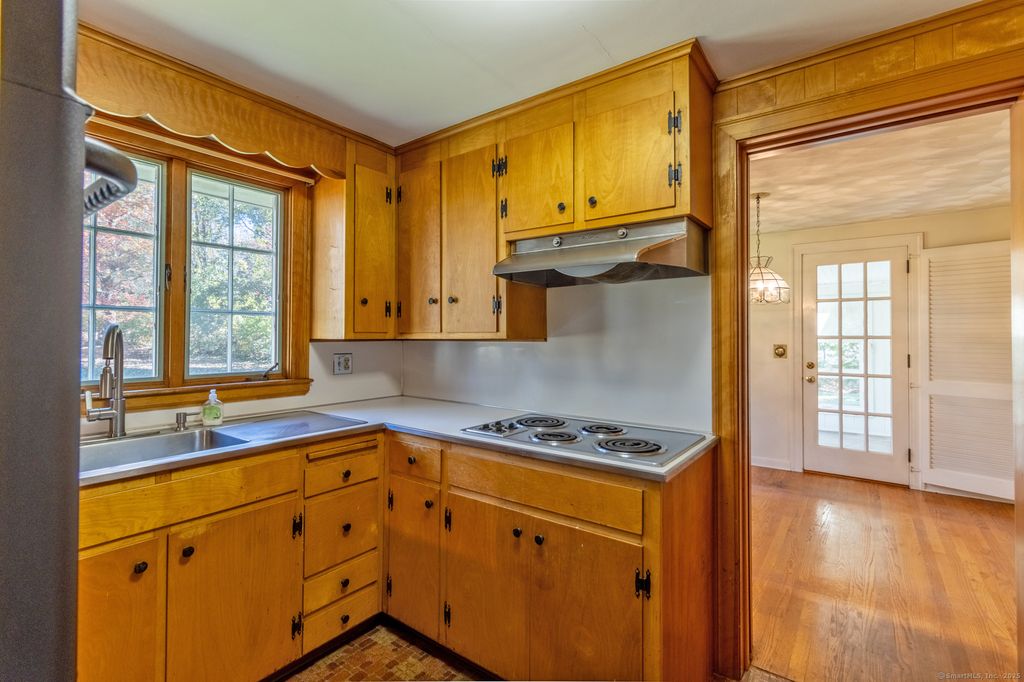 Nestled in the heart of Portland, this inviting 3-bedroom, 2-bath ranch offers comfort, convenience, and classic New England charm. The bright eat-in kitchen features built-in shelving, perfect for casual dining and everyday living. Just off the kitchen you will find a small mudroom, and the covered porch and sunroom provide relaxing spaces to enjoy throughout the seasons. Hardwood floors run throughout the bedrooms, adding warmth and character, and the primary suite includes a private bath with a walk-in shower for added ease. This home is waiting for its next owner to make it their own, check it out today!