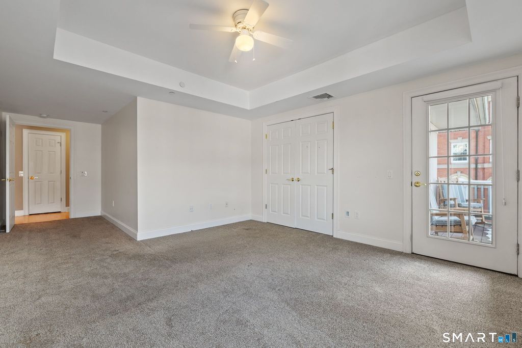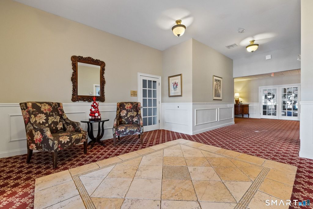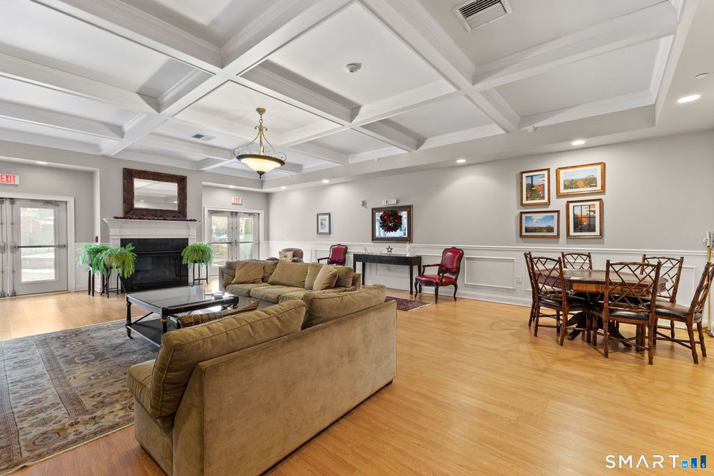Welcome to Fernwood Estates, one of West Hartford's premier over-55 communities, where comfort meets elegance in this sun filled two bedroom, two bath condo just moments from Elizabeth Park and vibrant Blue Back Square. Step inside to an expansive open concept living area framed by tray ceilings, warm natural light, and French doors that lead to your private balcony with charming courtyard and historic brick building views. The kitchen feels straight out of a home magazine, showcasing granite counters, stainless steel appliances, abundant cabinetry, a custom pantry door, and a seamless flow into the dining and living spaces for effortless entertaining. Both bedrooms are generously sized, each with balcony access, deep closets, and calming natural light. The primary suite offers an airy retreat with a spacious full bath featuring granite counters and a walk in shower, while the second bath includes a granite vanity and tub. A full laundry room adds everyday convenience. Additional features include a shared rear patio with BBQ area, a community room ideal for gatherings, and a fitness room, along with one garage parking space, elevator access, beautiful grounds, and included utilities such as water and grounds care. Stylish, comfortable, and wonderfully convenient, this Fernwood Estates condo is ready to welcome you home.