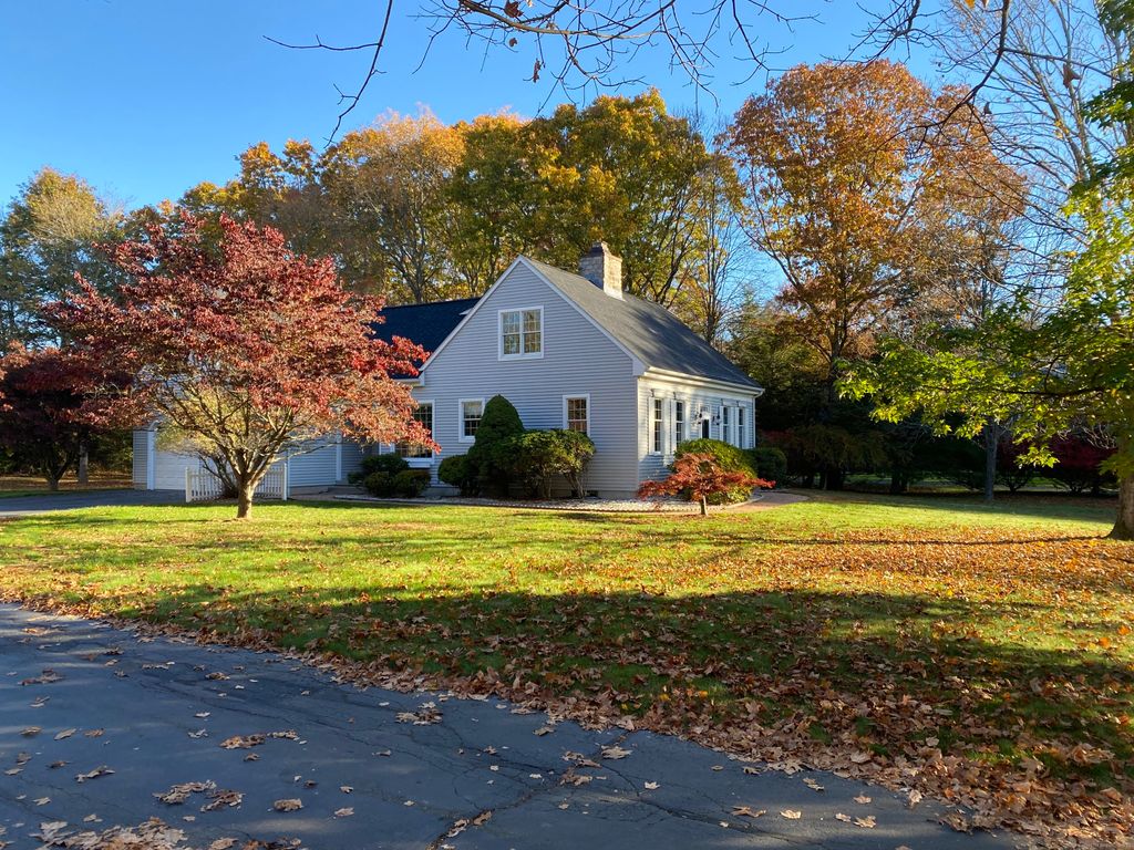 Welcome to a well-cared-for 1998 Cape Cod on 0.92 acres along a quiet private road shared with only two other homes. Everyday spaces are thoughtfully arranged: an eat-in kitchen for casual meals, a dedicated dining room for gatherings, and a comfortable living room centered on a propane fireplace all with 9-foot ceilings. The first-floor primary suite adds convenience with a walk-in closet and an updated full bath, while a nearby half bath and mudroom/laundry simplify daily routines. Upstairs, two bedrooms, a full bath, and a versatile family room support work, hobbies, or media connected by two staircases for easy flow. 2025 updates include New architectural-shingle roof, Chimney Repointed, Garage doors/openers, Hardwood floors installed in mudroom, kitchen, dining room, living room, first-floor bedroom, plus the two upstairs bedrooms, hallway, and family room. Exterior and utility highlights include an oversized two-car attached garage with a utility sink, automatic openers, and extra storage/workspace, plus a 12' x 16' shed for equipment and gear. The wide yard invites gardening, outdoor dining, and relaxing time outside. City Water~Septic~Propane Warm air heat~Central Air~Easy Commute to 691 or Merritt Parkway. Come see the beauty of what the Town of Cheshire offers with its open space, Roaring Brook Falls, Farmington Canal Heritage Trail, parks, outdoor recreation, and more. Showings by appointment.