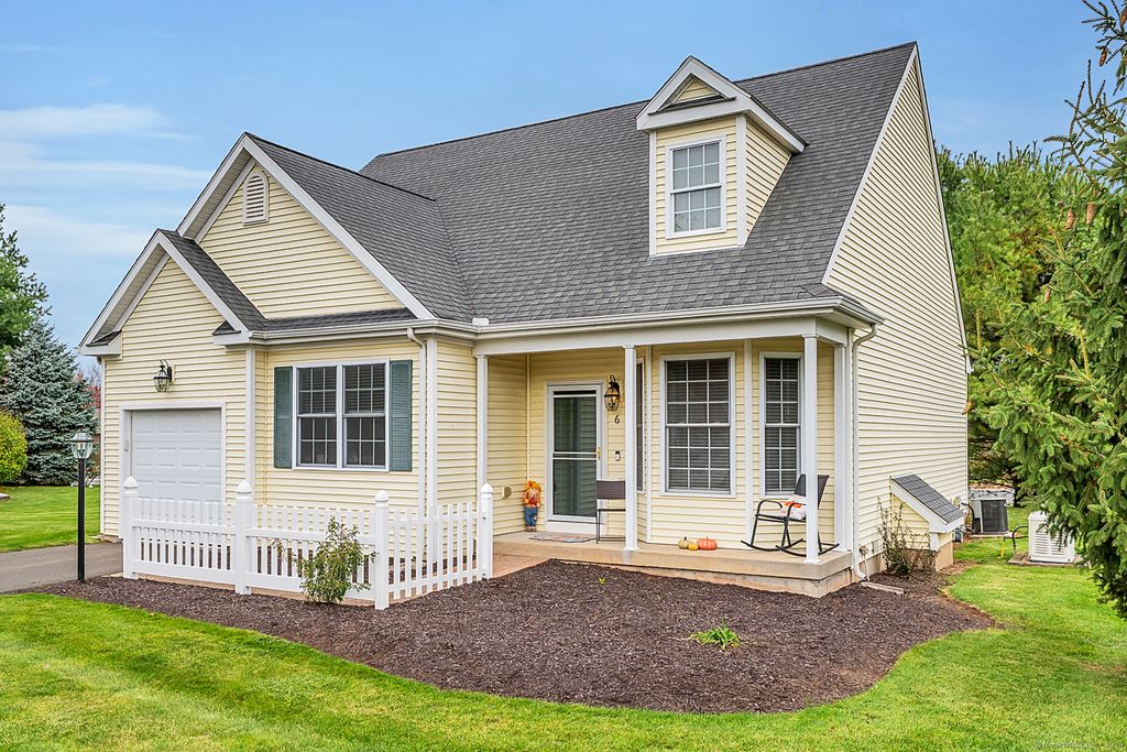 Welcome to this meticulously maintained property at 6 Strawberry Ln in Phillips Farm 55+ luxury adult community. This well-crafted home is built for comfort and convenience. This home features many new updates including new quartz counter tops and backsplash, new vinal floors throughout, with new linoleum in the kitchen and bathrooms. The entire house, including ceilings and garage, was painted eight months ago. There is new carpet on the stairs, new custom blinds, three new higher toilets in the bathrooms and a new sink in the master bathroom. Additionally, there is a new dehumidifier in cellar, newer hot water heater, new ring doorbell, and new drapes on the sliding doors. Two of the three bedrooms, including primary, are on the main level and the 3rd bedroom is on the second floor. There is also a den/office on the second floor that could be used as a bedroom. Full bath in primary bedroom and full bath on second floor. Laundry/ 1/2 bath on the first floor. Upon entering, the vaulted ceiling and open living room and dining room will make you feel at home. The kitchen has an open wall over the kitchen counter to the living room. The Generac generator will keep the lights on during a storm. You will enjoy the patio while entertaining. This house is spectacular and meticulously maintained with detailed touches everywhere. This will not last.