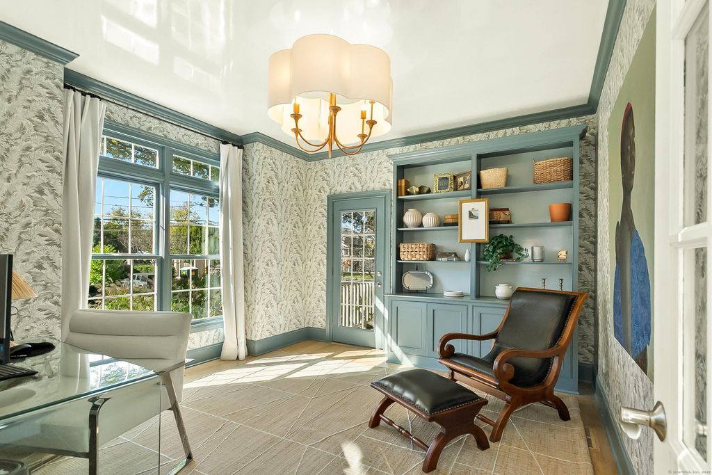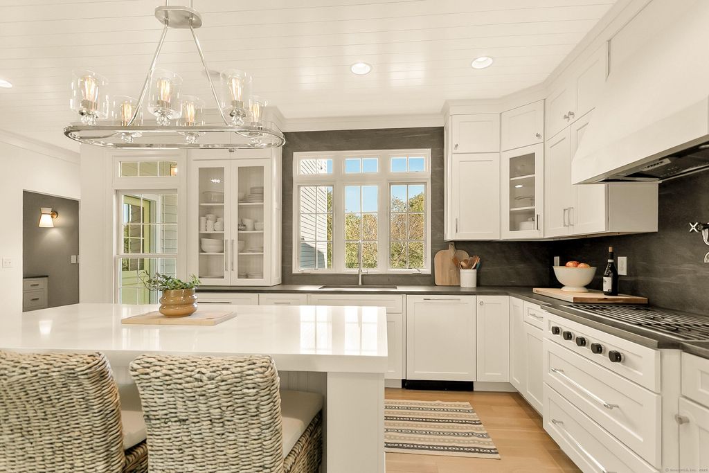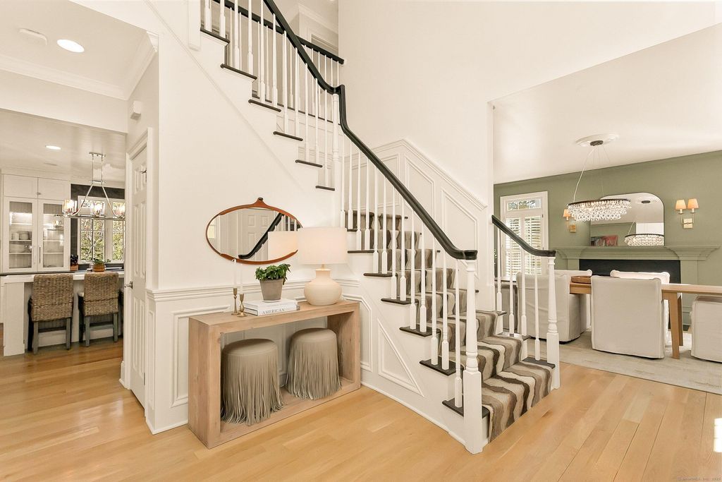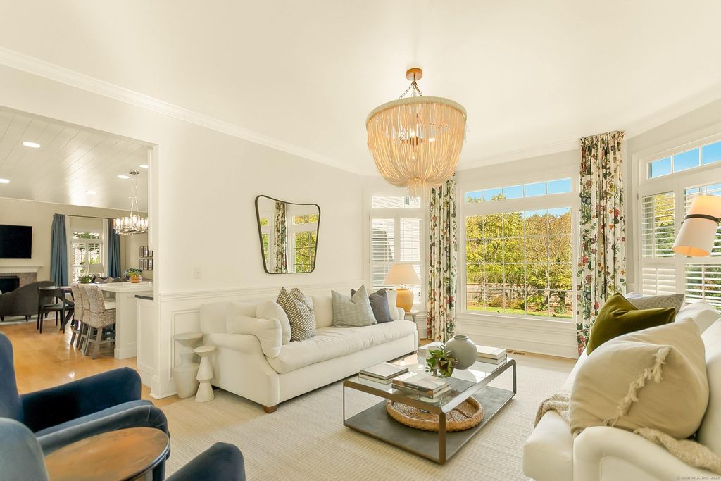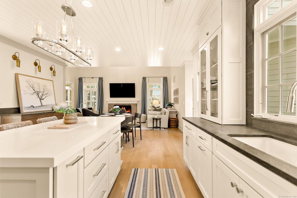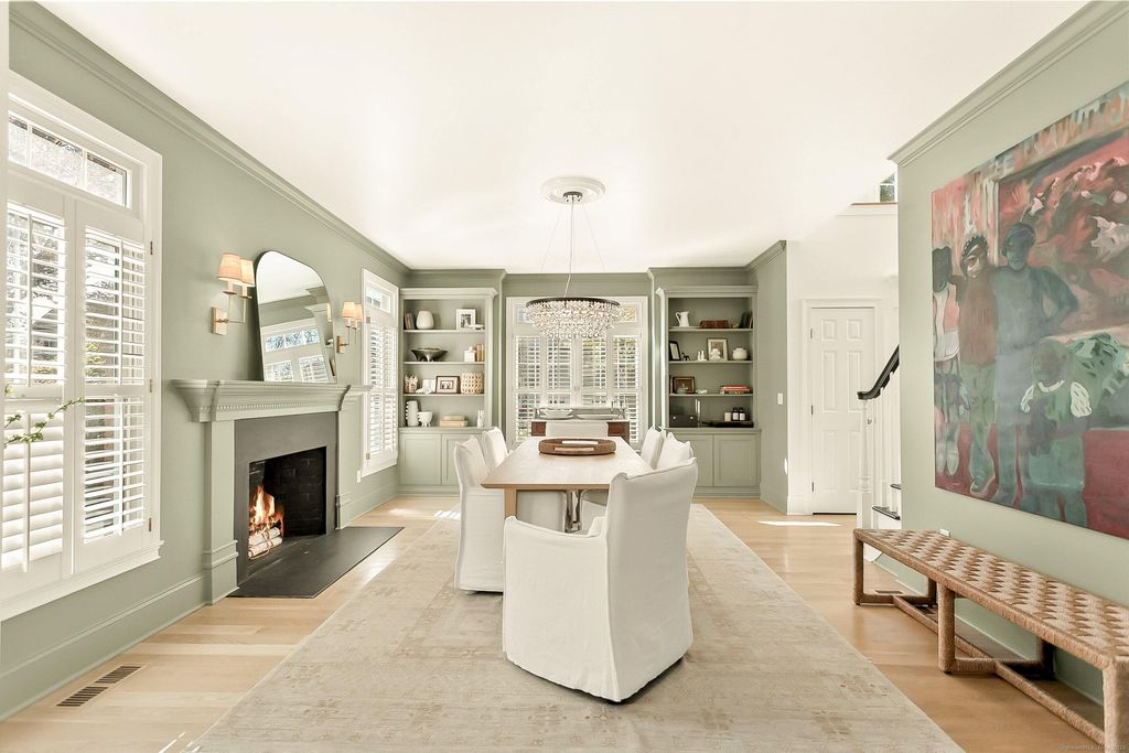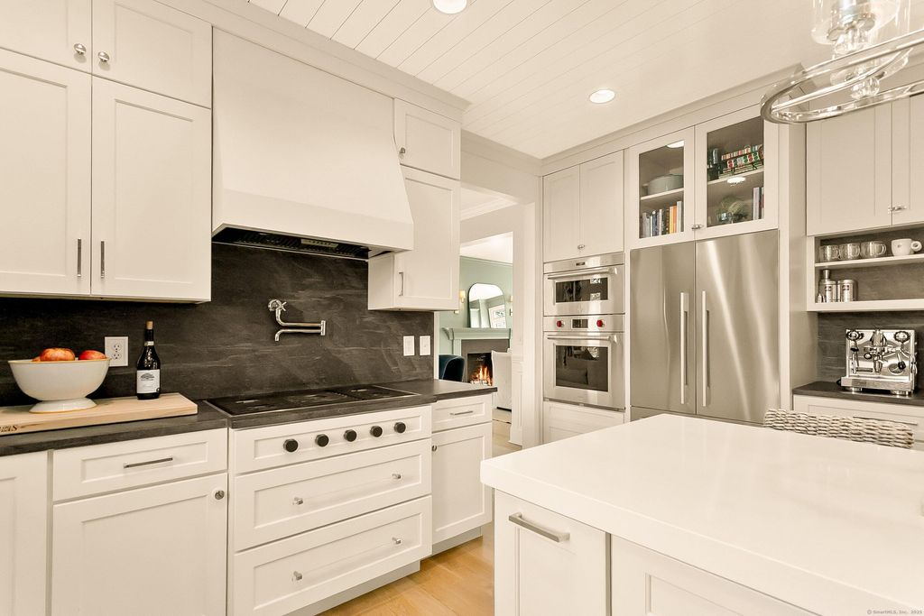 Inspired living meets coastal New England charm at 309 Birch Road in Fairfield. This thoughtfully designed home in the beach area blends elegant millwork, hardwood floors, transom windows, plantation shutters, and custom built-ins with natural light throughout. The two-story foyer welcomes you to superior craftsmanship, leading to a private office and front porch, formal dining with wood-burning fireplace and built-ins, and a serene living room overlooking lush grounds. The heart of the home, the eat-in kitchen, features Wolf appliances, Waterworks fixtures, honed Pietra Cardosa schist stone, white cabinetry with seeded glass, a quartz island, and breakfast area opening to a two-story family room with vaulted ceiling, brick fireplace, built-ins, and beverage nook. Upstairs, four bedrooms include a primary suite with tray ceiling, spa-like bath, and dual walk-in closets. Three additional bedrooms on the second floor have unique attributes- custom built-ins, window seats, stylish wallpaper, and gorgeous views A finished third floor adds a 5th en-suite bedroom and bonus room. The fully fenced-in yard, bordered by beautiful landscaping offers space to relax, play, or dine al fresco. A two-car attached garage completes this home, w/ 20 ft ceilings, plenty of storage, and the potential for a lift adding a desirable element for any car enthusiast. Perfectly positioned for the coastal lifestyle of your dreams, this home is just a short stroll to the beach, schools, train & downtown