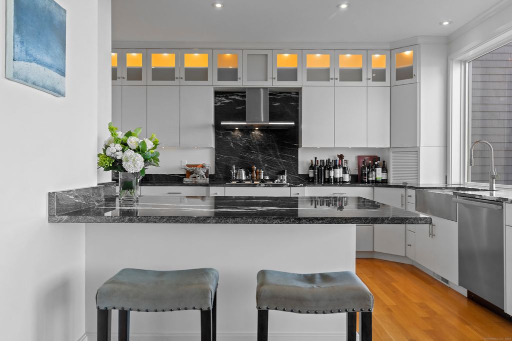 Direct Waterfront with Private 90' fixed IPE dock constructed 2012 by Gwenmor Marine. Appx. 3.5' of water at Low Tide, all located in the Heart of Historic Stonington Borough. Water, Louvered Halogen Foot Lights and 30amp power box on your private dock. Walls of Windows overlooking Stonington Harbor and your dock from this Stunning fully renovated 3 Bedrooms, 3 Full Baths waterfront home. Open floor plan leads to the renovated Meila Gourmet Chef's Kitchen with Porcelanosa tiles, Dining Room and Family Room with one of the two propane gas fireplaces. This home was beautifully renovated in 2012. The second floor hosts a smartly designed Primary Bedroom Suite with amazing water views, private deck, the second gas fireplace and an opulent en-suite marble full bath with water views. All 3 baths have "Rainfall" shower heads. The additional 2 bedrooms and full bath offer plenty of room for guests. Walk down to your private 90 foot dock through your landscaped rear yard and right on to your boat! House is serviced by an Efficient propane Hydro Air heating system and municipal utilities. This is a prime location on Water Street in Historic Stonington Village. Live in the Heart of "The Borough" just steps from Stonington Harbor Yacht Club, Deep Water Marinas. Enjoy unique Restaurants, Boutique Shops, local Artist Galleries and The Historic Stonington Lighthouse at DuBois Beach. Live a Dream.
