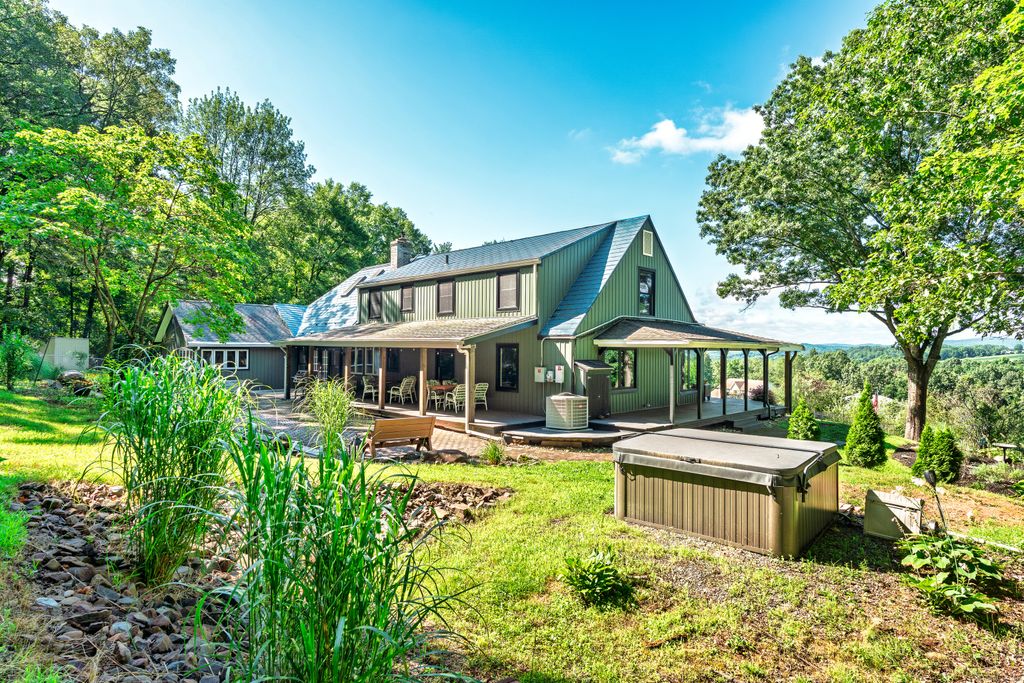 Awe-inspiring views! No electric bills! Think of energy savings as $80K-$100K off the sales price of the home! 2 separate parcels! A stunning 3BR, 3BA Cape w/2,836 sq ft and 5.30 acres of gated/fenced land. This masterpiece boasts a 26'x15' Family Rm w/soaring cathedral ceiling, 7 skylights, fireplace w/wood stove insert, maple hardwd flr. This room and MBR en-Suite are heated/cooled by mini splits. The 26'x20' gourmet kitchen w/granite countertops is a chef's dream. Featuring Cafe refrigerator & Cafe 6-burner stove, new stainless hood, Propane Jenn-Air cook top on large island, cherry hardwd floor. The prominent Living Room & Dining Room are open and windows surround on all sides. First floor also hosts a sprawling MBR en-Suite at 26'x20' w/cathedral ceiling, bamboo in-laid floor, walk-in closet, large spa-like Master Bath w/2 sinks, jetted tub, walk-in shower, & tiled radiant floor heating. Upstairs has 2 spacious bedrooms and 3rd full Bath. Large lower level is mostly fin'd w/propane heat. The covered 3-sided wrap-around porch is perfect for relaxing/enjoying mountain views & beautiful sunsets. In back, privacy abounds w/a large hot tub. Relax on the back porch, enjoying the 50' koi pond w/2 waterfalls, and deer outside fence! Lifetime metal roof, paid off solar panels, owned propane tank, C/Air, new windows/siding, Robo-Lawn mower does portion of lawn, 1st Flr Laundry Rm, underground utilities! Sellers spent approx. $200K and you inherit the fruits of their labor.