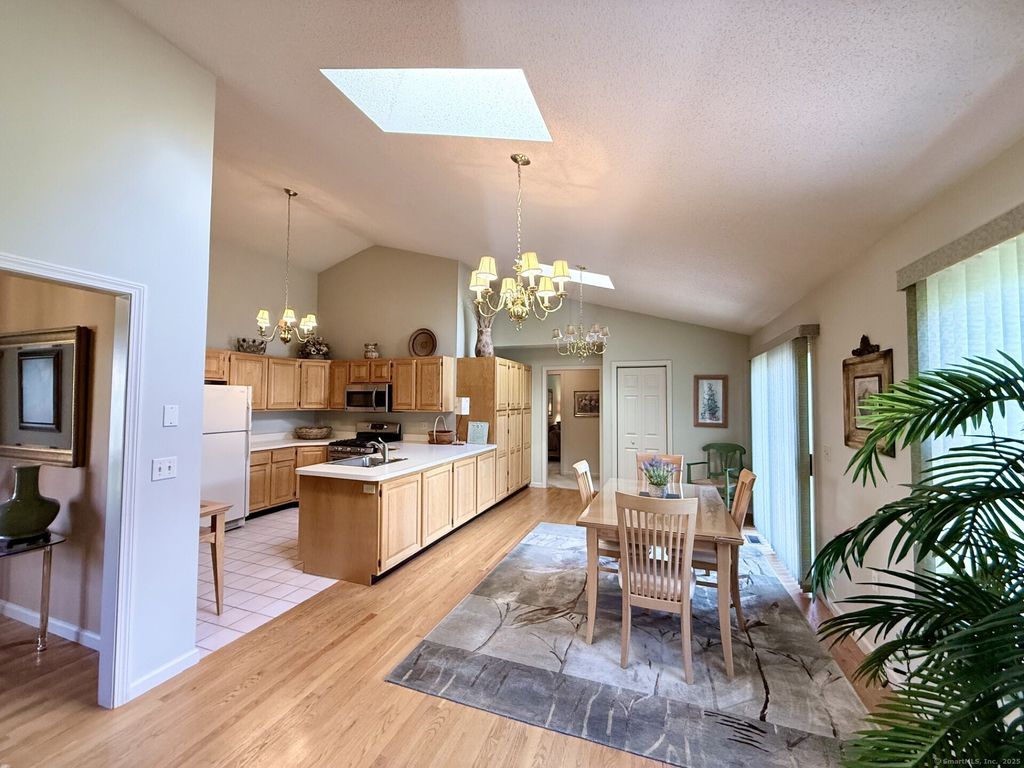 Welcome to Watertown Old Farm and Enjoy One-level Living in this Beautifully maintained 3 Bedroom, 2 Bath Eaton Ranch. This Wonderful Unit features a Kitchen w/Oak Cabinets, SS Appliances (New Dishwasher and Disposal), plenty of Cabinet storage, Skylights, Cathedral Ceilings (that add to the Abundance of Natural Light Year-Round), Hardwood Floors, Dining Area w/Sliders that Lead to a Spacious Deck-Ideal for Relaxing or Entertaining. The Light & Bright Formal Living Room offers a Cozy Gas Fireplace to Enjoy those Up & Coming Holidays. The Primary Bedroom has 2 Large Closets & Full Bath w/Stand Up Shower. The 2nd & 3rd Bedrooms provide a Nice Size Space & Adjacent Main Bath w/Tub/Shower Combination. The Lower-level Basement is a Walk-out, Partial Finished Room, with Full Size Windows & a Slider which can Offer Endless Possibilities of Additional Living Space. This Unit Has a 1 Car Attached Garage that has easy access from the Kitchen (very rare in this Complex). Newer A/C Compressor. This Unit is a Must See and Close to all the Amenities that Watertown has to Offer with a Convenience of Condo Living.