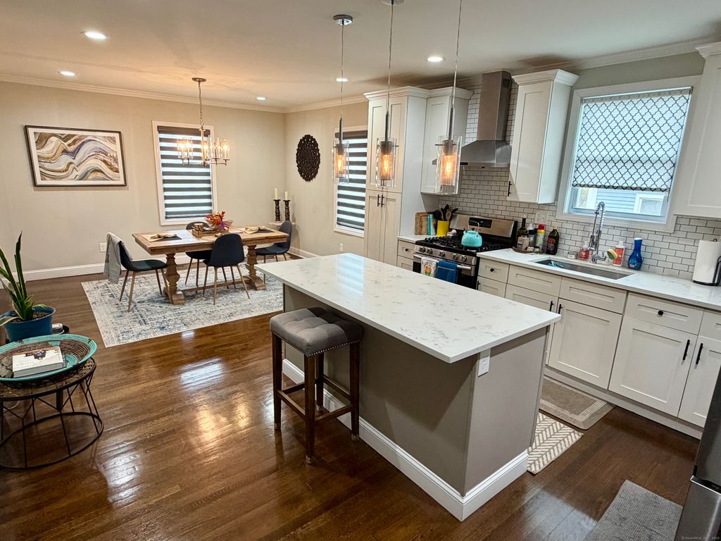 Completely renovated Colonial in prime Trumbull location! Welcome to this beautifully updated 4-bedroom, 2.5-bath Colonial, fully renovated in 2017 from top to bottom-inside & out. Step into a bright & open floor plan featuring a stunning custom kitchen with quartz countertops, center island, stainless steel appliances, and plenty of cabinetry. The open-concept layout flows seamlessly into the spacious dining room and living room with a wood-burning fireplace-perfect for entertaining or cozy nights in. Upstairs you'll find 3 generous bedrooms and two full tiled baths, while the main-level 4th bedroom offers great flexibility as an office or den. Enjoy refinished hardwood floors throughout both levels, a welcoming tile-floored entry foyer, and a rear mudroom leading to a beautiful stone patio, level yard, and 2-car garage. Recent upgrades also include a high-efficiency furnace, hot water heater, central air, updated electrical, vinyl siding, thermo-pane windows, and all new interior and exterior doors- everything just 8 years young. The walk-up attic provides excellent storage space and potential for future expansion. This home is ideally located just minutes from highways, shopping, restaurants, golf, parks, walking trails, and Trumbull's award-winning schools. A short 5-minute walk brings you to Island Brook Park with tennis, pickleball, basketball, softball fields, and a playground. Move right in and enjoy the perfect combination of charm, quality, and convenience!
