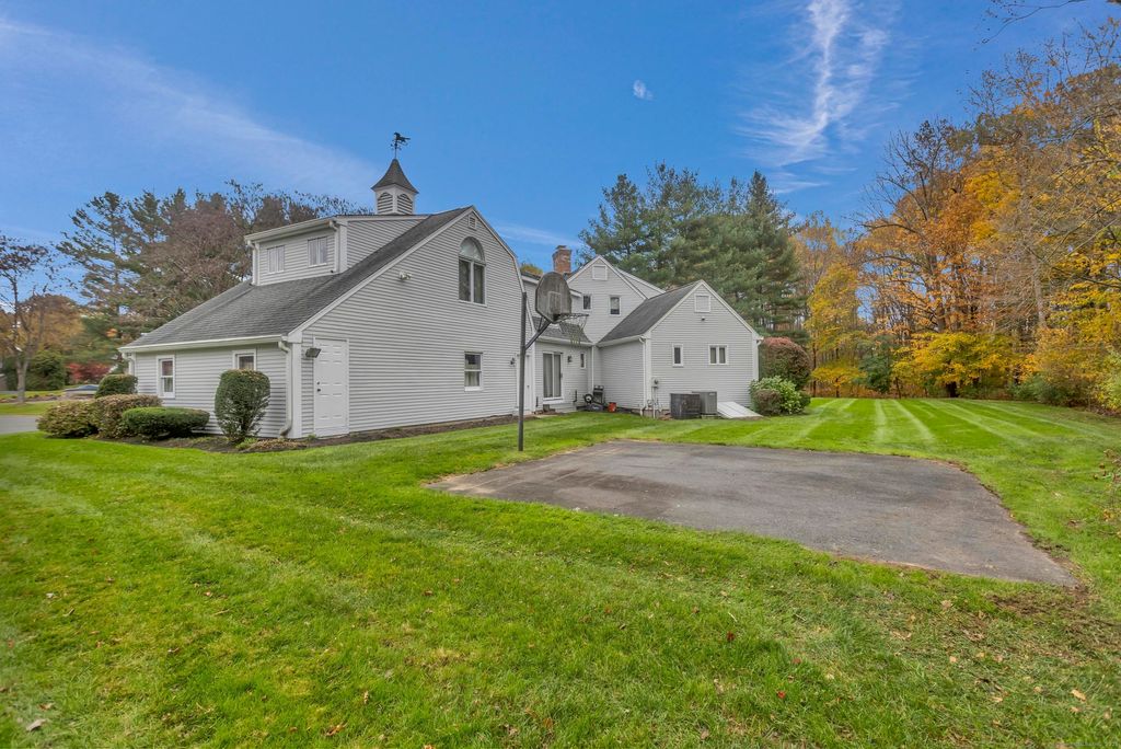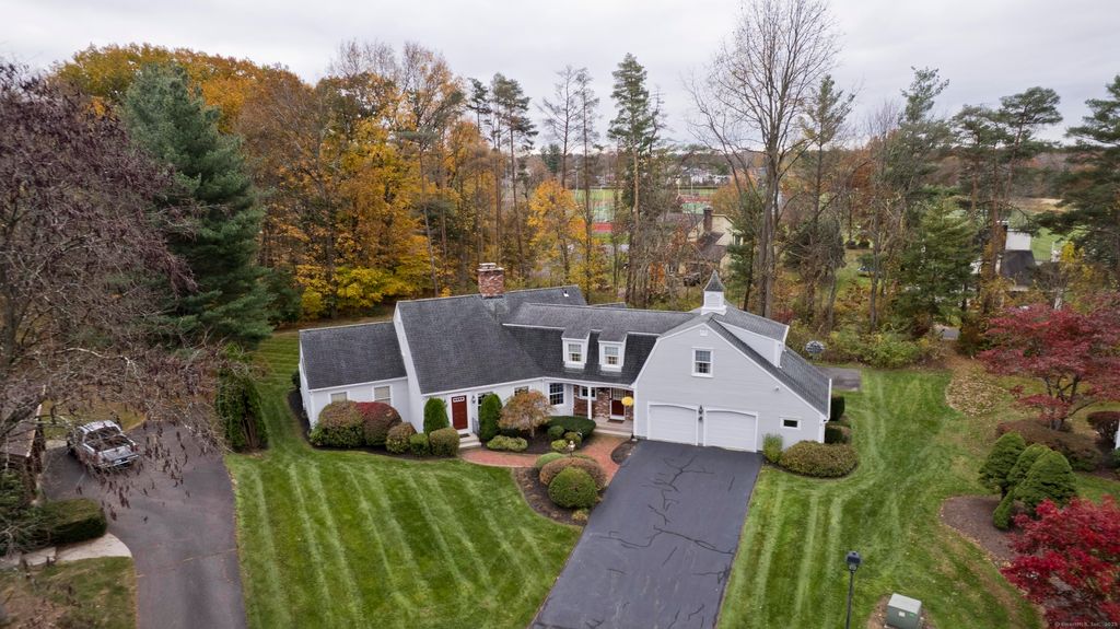 You will fall in love with this custom built home in a premier Suffield location! First time on the market, this over-sized Cape is situated on a cul-de-sac in the center of Suffield abutting the beautiful Suffield Academy campus! Walk to Main St. and Suffield Country Club from this meticulously maintained home! Sprawling open floor plan connects the kitchen, dining area, living room and family room with a wall of glass overlooking the 48' x 12' rear deck and pristine back yard. The kitchen is complete w/granite counters, stainless steel appliances and tiled backsplash opening to the living room w/large brick fireplace. The 20' x 18' family room boasts cathedral ceilings and is soaked in natural sun light. The formal dining room w/fireplace, crown moulding and french doors is perfect for hosting those special occasions. The main floor is capped off by a private home office with custom built-in cabinetry and a dedicated laundry room w/full bath. The primary bedroom suite spans much of the second level w/full bath, large walk-in closet and spacious bedroom. The remaining two bedrooms are generous sized and share a full bath with dual vanity in the hallway. The unfinished lower level provides ample storage and has finishing potential. This home even has a basketball court tucked behind the garage. Tremendous opportunity awaits, schedule your showing today!
