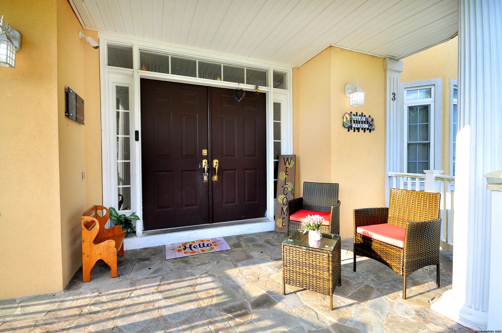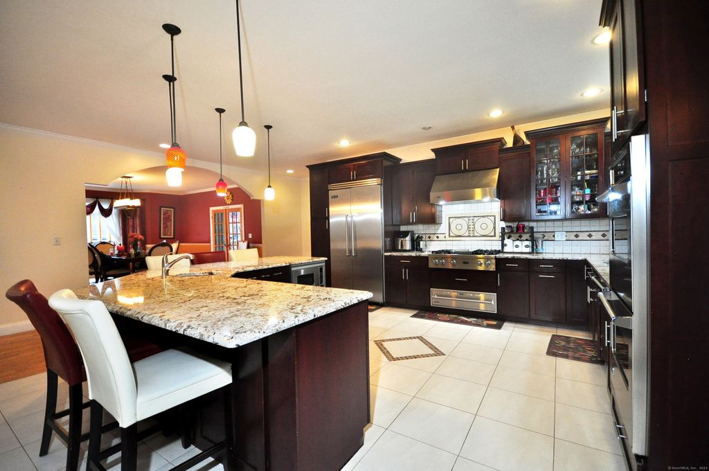 Welcome to your dream home! This custom-built Colonial offers seven bedrooms, 5.5 baths, and over 7,000 sq ft of beautifully finished living space. The grand two-story foyer with a split staircase opens to a stunning family room featuring a 19-foot cathedral ceiling and a gas fireplace. The gourmet kitchen is a chef's delight, featuring granite countertops, Viking stainless-steel appliances, custom tilework, and cherry oak cabinetry. A formal dining room with 9-foot ceilings, crown molding, and French doors provides an elegant setting for entertaining. The first-floor primary suite includes walk-in closets and a luxurious bath with a stall shower. A second spacious primary suite on the upper level offers additional comfort and privacy. The upper floor also features four further bedrooms and three full baths, providing ample space for family and guests. Gleaming hardwood floors, detailed millwork, and abundant natural light flow throughout. Perfect for both grand gatherings and everyday living, this exceptional home combines style, comfort, and quality craftsmanship.