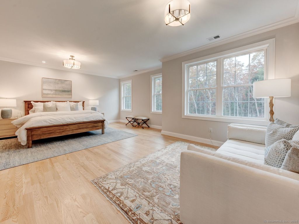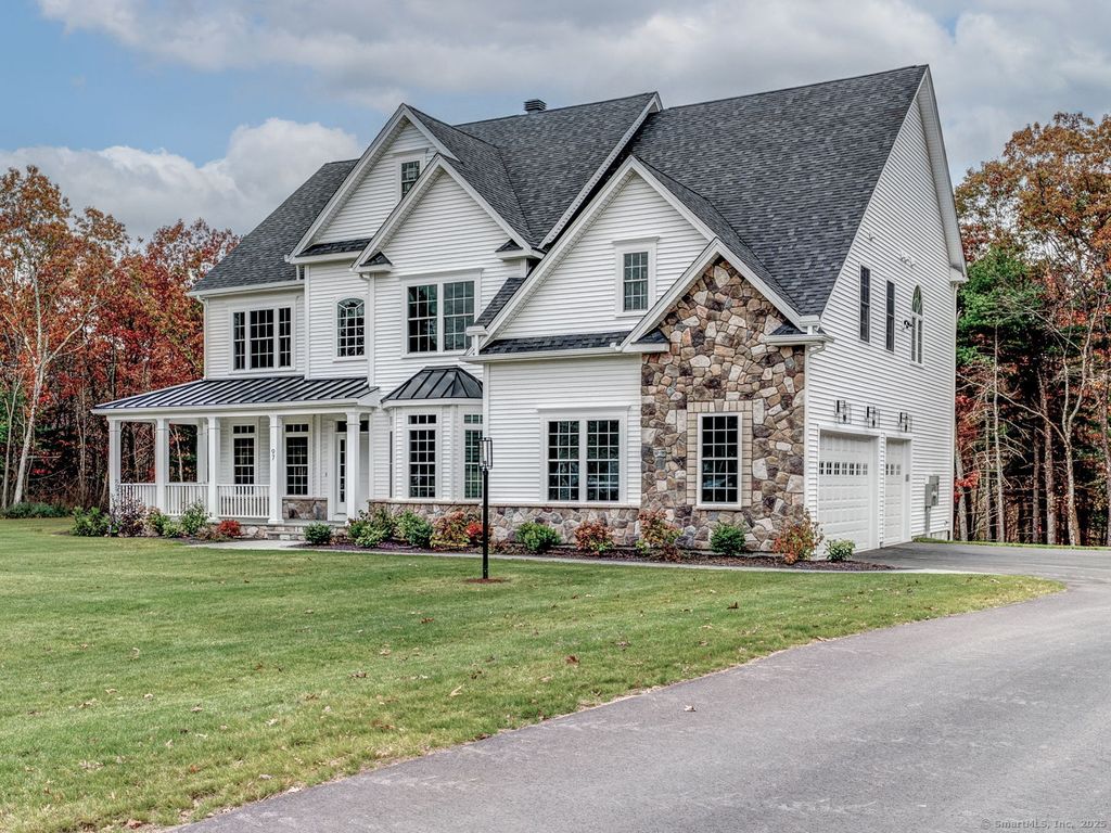 Completed New Construction by premier builder, Reggie Jacques, this picture-perfect Colonial combines exceptional craftsmanship, luxury finishes, & an unbeatable location. Set on a private cul-de-sac, the home makes an unforgettable first impression w/ its elegant stone facade, wraparound porch, & over 2 acres of beautifully landscaped grounds w/ irrigation system. Step inside to a grand two-story foyer that opens to an impressive, light-filled layout. Formal living & dining rooms offer timeless appeal, while the dramatic family room steals the show w/ soaring ceilings, a wall of windows, and striking millwork surrounding the fireplace. The designer kitchen is the centerpiece of the home, featuring custom ceiling-height cabinetry, quartz countertops, a statement hood, black hardware, & a spacious island-perfect for entertaining. The main level also offers a flexible bedroom suite, ideal for guests or a home office. Upstairs, the luxurious primary suite provides a private retreat with a sitting area, expansive custom walk-in closet, and a spa-like bath. Three additional bedrooms, two full bathrooms, and a second-floor laundry rm complete this level. The walk-out lower level offers endless possibilities, already equipped w/ rough plumbing for future expansion. With 9' ceilings on every floor-including the basement-this home was designed for both comfort and sophistication. Come see this beautifully staged home!!!