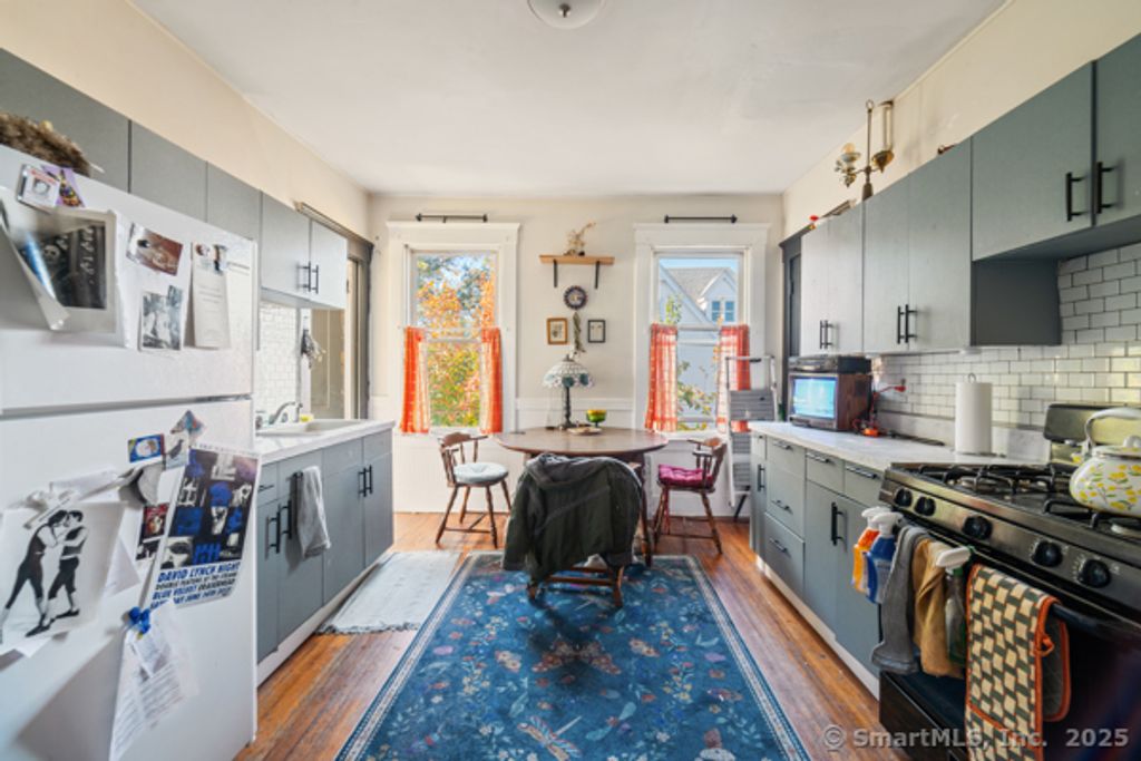 Welcome to this well-maintained three-family home offering a great investment opportunity or owner-occupant option in desirable West Haven. Situated on a level lot, the property features a two-car detached garage and ample off-street parking for tenants or guests. The home includes a total of 15 rooms and 3 full baths, with each unit showcasing updates and unique character throughout. Upon entering the common main foyer, you're greeted by a charming mosaic tile entry and an expansive hallway that sets the tone for the home's warmth and space. The first-floor unit has been extensively remodeled, featuring central air, all-new sheetrock, and preserved original 10-foot ceilings, natural woodwork, and a beautiful center fireplace. A large primary bedroom addition at the rear provides generous space and the potential to add a second bath if desired. The second-floor unit mirrors the first-floor layout, minus the rear addition. This unit also offers 9-foot ceilings, updated walls, and a remodeled kitchen with a spacious pantry and storage closet. The third-floor unit features four rooms, including a partially upgraded kitchen and bath, making it a comfortable and functional space. All units are equipped with separate gas heat, hot water, and cooking, and share access to the basement for additional storage. This is a fantastic opportunity to own a solid multi-family property close to area amenities, schools, and transportation - perfect for investors or owner-occupants alike!