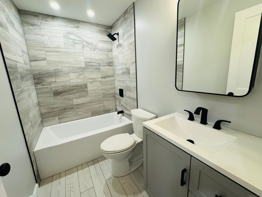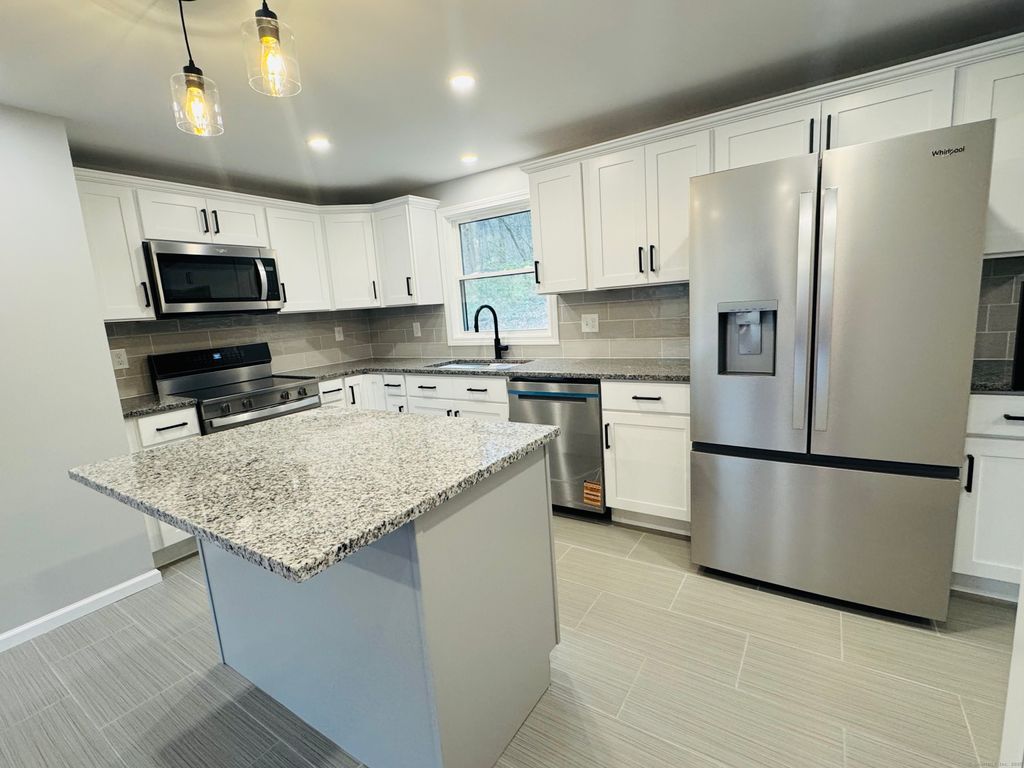 Stunning remodeled raised ranch perfectly located for easy access to anywhere you need to go. This home features a spacious primary suite complete with a walk-in closet, two additional closets, and a luxurious master bath with double sinks and a walk-in shower. On the opposite side of the home, you'll find three additional bedrooms and a full bath. The heart of the home offers an open floor plan that seamlessly connects the kitchen and living room. The kitchen boasts granite countertops, an island, and plenty of space for entertaining. Off the top of the stairs from the oversized two-bay garage is a convenient mudroom with tile flooring and access to the brand-new back deck. The lower level features an open family room with a beautiful epoxy floor and a half bath - perfect for entertaining or relaxing.