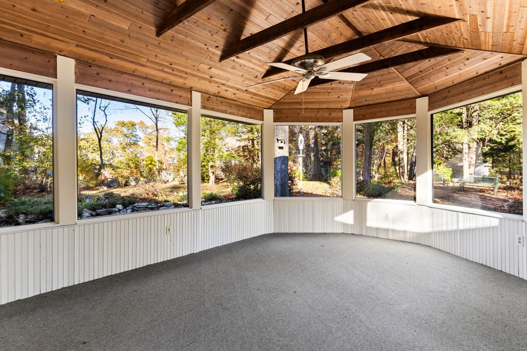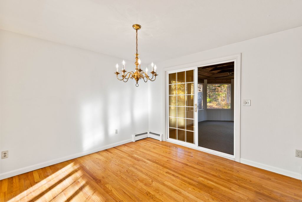 Newly painted throughout! Discover the perfect blend of comfort and convenience in this sun-filled single-level home Nestled just moments from the Historic Guilford Green, this meticulously maintained three-bedroom home creates an idyllic escape with its private backyard oasis featuring mature perennial gardens and sparkling in-ground pool. Bathed in natural light, this welcoming home showcases hardwood floors that flow seamlessly through the living and dining area into the sunny kitchen. From here, you'll enjoy peaceful views of your private outdoor sanctuary while having direct access to the screened porch-your new favorite spot for morning coffee or evening relaxation. The thoughtful floor plan includes two comfortable bedrooms and a bright primary with ensuite bath, while the conveniently located hall bathroom doubles as a laundry room for effortless one-floor living. Below, the full unfinished basement provides excellent storage potential. This prime location puts you just 2.5 miles from Guilford's historic Town Green, beach, and marina, while offering seamless connectivity to I-95 and New Haven. Whether you're seeking a peaceful retreat or easy commuter access, this turn-key home delivers the best of both worlds.