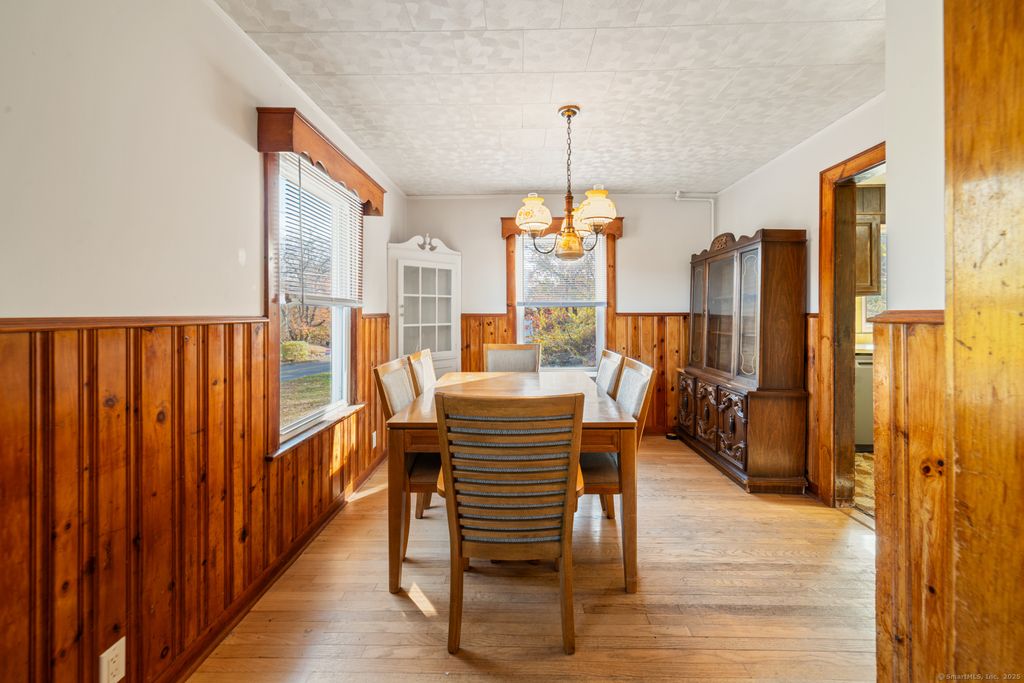 Welcome to 46 South King Street, a charming Cape-style home full of character and original mid-century details. Built in 1941, this five-bedroom, two-full bath residence offers warmth and timeless appeal. With its classic wood paneling, built-ins, and large stone fireplace, this home is a nostalgic nod to an earlier era - perfect for those who appreciate vintage New England craftsmanship. The home features gabled dormers, vinyl siding exterior, an asphalt shingle roof in good condition, as well as updated 200 amp service, hard wiring for a generator, and a new fuel tank. The home's flexible layout, with bedrooms on both the main level and upstairs, is suitable for a multitude of uses including entertaining guests, as a home office, or for multi-generational living. Located near local schools, shopping, recreation, and easy access to I-84, this property offers tremendous potential for those seeking a home with history and heart. Whether you choose to preserve its vintage charm or modernize the space, 46 South King Street provides a strong foundation for your vision.
