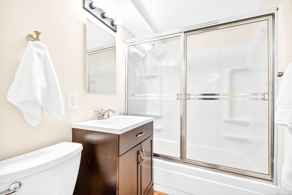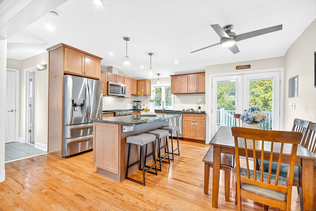 Bright, stylish, and commuter-friendly - 31 Woodridge Drive S delivers Stamford living with a modern edge. Behind custom double entry doors, an open, sunlit layout connects a granite kitchen with island seating, 3 year old stainless appliances, and gas cooking to a spacious living area with a classic fireplace and oversized windows. French doors lead to a large, completely renovated private deck and that overlooks the spacious fenced yard, perfect for hanging out, entertaining, or letting your dog roam. Two bedrooms and a spa-inspired bath featuring a deep soaking tub complete the main level, where hardwood floors and clean lines keep things fresh and timeless. The lower level adds flexibility - great for guests, a home office, or a creative studio - with its own living space. Previous owner used lower level as a mother/daughter. Extras include 2 year old central air, a storage shed, and off-street parking. All this just minutes to Metro-North, downtown Stamford, and an easy shot to NYC - the best of suburban ease with an urban vibe.