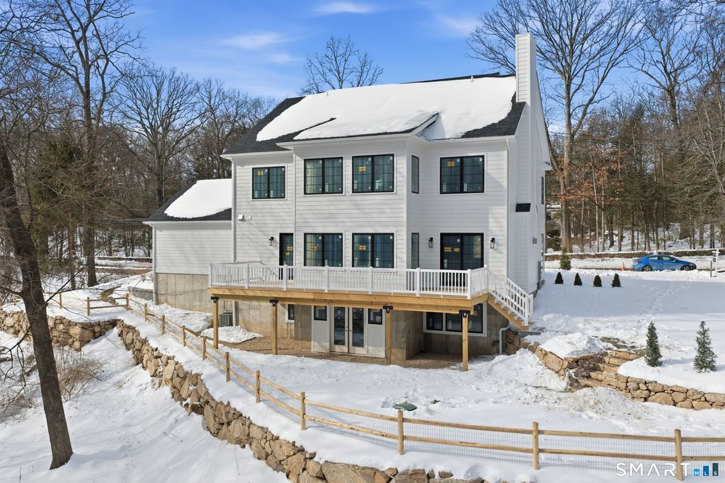 Brand-new construction at 511 Den Road offers refined modern living in a peaceful North Stamford setting on 1.09 private acres. This thoughtfully designed 4-bedroom, 3.5-bath home features an open-concept layout with hardwood floors, recessed lighting, and a striking living area centered around the fireplace, flowing seamlessly into a chef's kitchen with an oversized island, quartz countertops, custom cabinetry and a butler's pantry-ideal for effortless entertaining. Oversized Marvin windows flood the home with natural light and frame tranquil wooded views, while sliders open to a spacious deck overlooking the private backyard. The luxurious primary suite delivers a spa-like retreat with a soaking tub, double vanity, and elegant finishes. A large mudroom off the 2-car attached garage adds everyday functionality and includes an EV car charger, while a dedicated home office provides the perfect work-from-home setup. Built for comfort and efficiency, the home features spray foam insulation, Hardie board siding, central air, energy-efficient systems, and a walk-out lower level, offering the perfect balance of privacy, luxury, and convenience just minutes from nature preserves, dining, downtown Stamford, and major commuter routes.