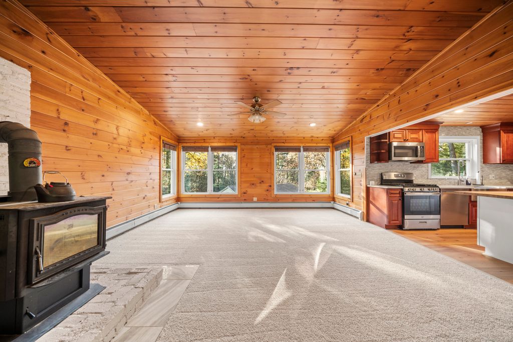 Private country retreat on 5.04 acres with a 1,200 SF outbuilding & paddock, ideal for horses or a home business. Set back from the road, this beautiful property offers open space, wooded views, and a peaceful natural setting with a babbling brook and walking path through the trees. The large covered porch is perfect for relaxing and taking in the view. Inside, the living room, kitchen, and dining area share an open layout filled with natural light from oversized windows. The updated kitchen features a gas stove, generous cabinetry, and warm wood details that create an inviting atmosphere. The first floor primary suite includes a full bath and walk in closet, providing comfort and convenience for main level living. Upstairs are 3 comfortable bedrooms and a full bath. The walk out basement provides expansion possibilities and leads to a covered patio area with a private hot tub, perfect for relaxing while overlooking the peaceful surroundings. The impressive 1,200 SF two story outbuilding features radiant in floor heat, electricity, and a half bath, offering flexibility for a studio, workshop, or approved in-home business. This property is designed for a relaxed country lifestyle with areas for gardening and recreation, a paddock area suitable for horses or other animals, and thoughtful touches that enhance the country charm, including a chicken coop, dog kennel, and playscape nestled among the trees. The maple taps complete the classic New England character of this home.