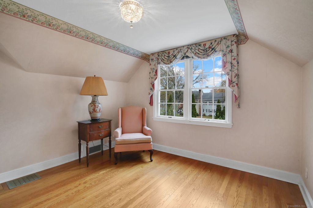 Originally built for a member of the JB Williams family in 1936, this expanded and updated Cape on over an acre of land has been lovingly cared for and maintained by the same family for almost 50 years. This delightful 4 bedroom 2 1/2 bath home is located in the Buttonball school district and is convenient to all that Glastonbury Center has to offer. The gracious foyer with turned staircase is flanked by a paneled home office/library on one side and the formal living room with gas fireplace on the other. A family room with vaulted ceiling and wood stove is a step down from the remodeled cherry kitchen with granite counters and stainless-steel appliances. A formal dining room with corner built-in hutches next to the kitchen is ready for those holiday dinners. The thoughtful addition of a first-floor primary suite with walk-in closet and gorgeous full bath with jetted tub and steam shower allows for one floor living if needed. Upstairs, 3 bedrooms share an updated full bath, with a bonus space off one bedroom that could be a craft space, art studio or study nook. The finished lower level boasts a second gas fireplace, along with one of a kind wood paneling from a former Glastonbury center barn. Not only is there a 2-car attached garage, but there is a 2 car detached garage with finished space above - perfect for that private home office or home gym. Updates galore including a newer roof, Andersen and Harvey windows throughout, brand new boiler, central air compressor