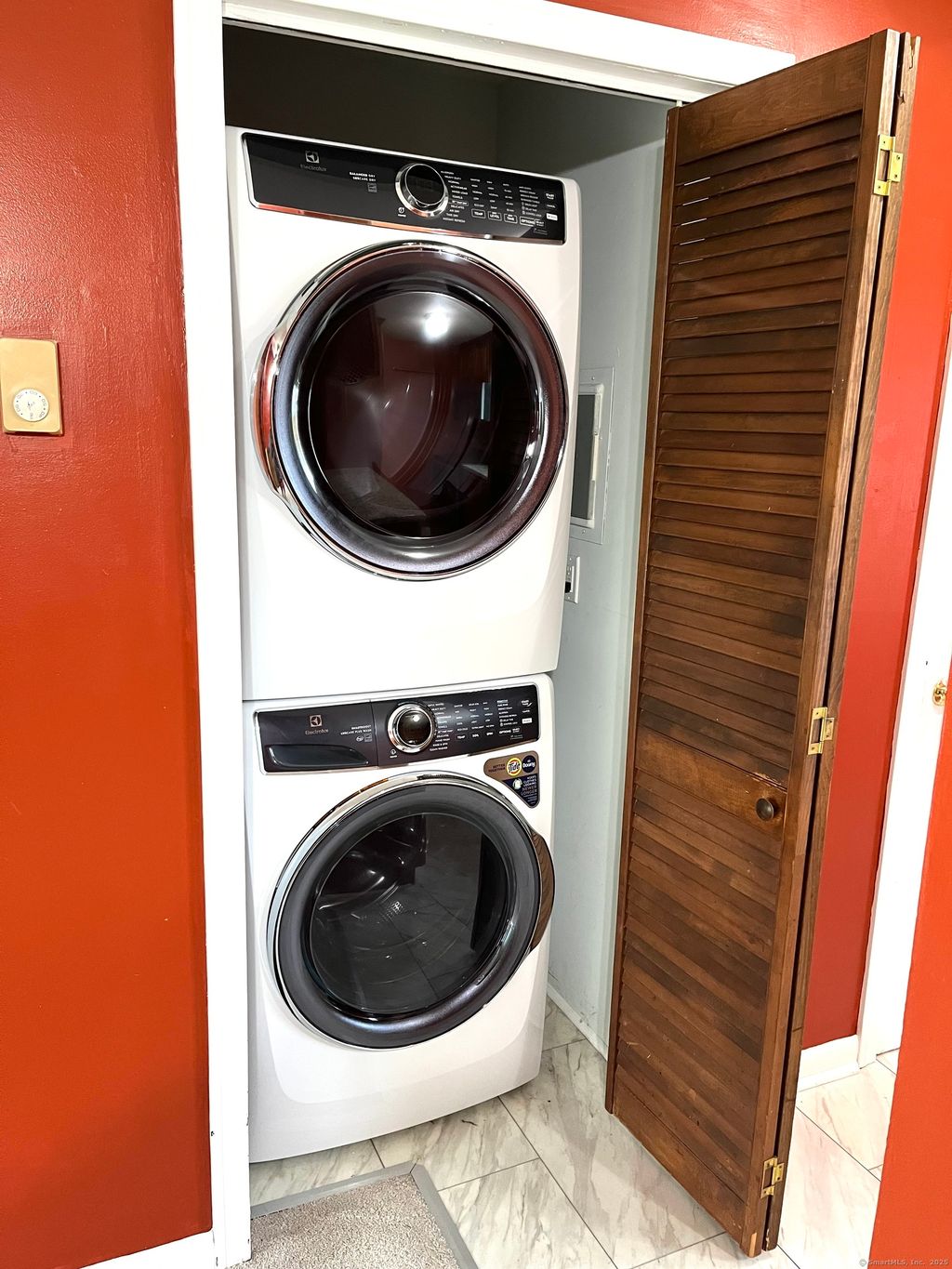 This is a lovely 2 bed 1.1 baths unit. The kitchen boasts new soft close cabinets, granite counters and SS appliances. Tiled foyer kitchen and 1/1 baths, which also has been remodeled. For your convenience there are almost new stackable W/D on first floor as well. Nice large Living room Dining combination, with new slider to patio overlooking green space and some trees. Upstairs you'll find 2 generous bed rooms, full bath, ample closets plus linen closet. This is a great place to call home, with close proximity to Hartford, Granby, Airport, Windsor, I91 shopping and other conveniences. Come take a look today