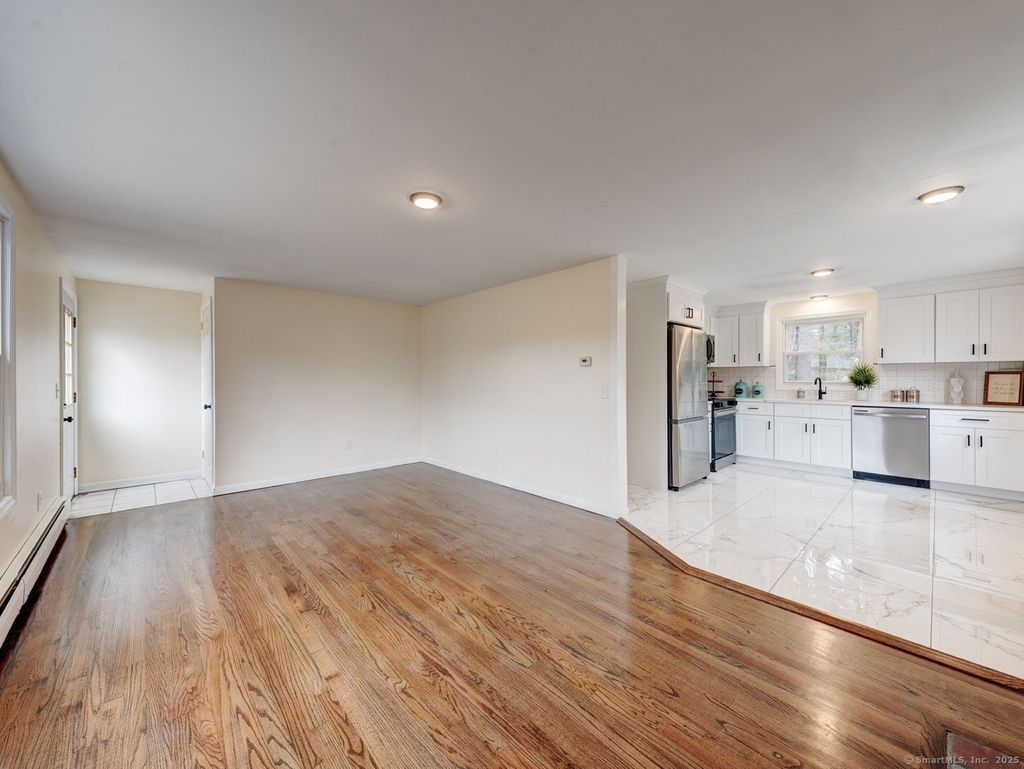 Beautifully Renovated Ranch with Easy First-Floor Living! Welcome home to this classic 3-bedroom ranch featuring modern updates and timeless style. Enjoy an open-concept living and kitchen area perfect for today's lifestyle. The kitchen featnew white cabinetry, quartz countertops, stainless steel appliances, and a cozy eat-in nook. The renovated bathroom features a fresh, modern design, while refinished hardwood floors flow throughout the home. Fresh paint and updated fixtures complete the move-in-ready feel. The lower level offers endless potential-ideal for a home gym, office, or recreation space-and includes plenty of storage. Outside, enjoy a private yard and convenient location close to local amenities. Additional upgrades include NEW Septic, Vinyl Siding & Roof! Move right in and start enjoying easy, stylish living!