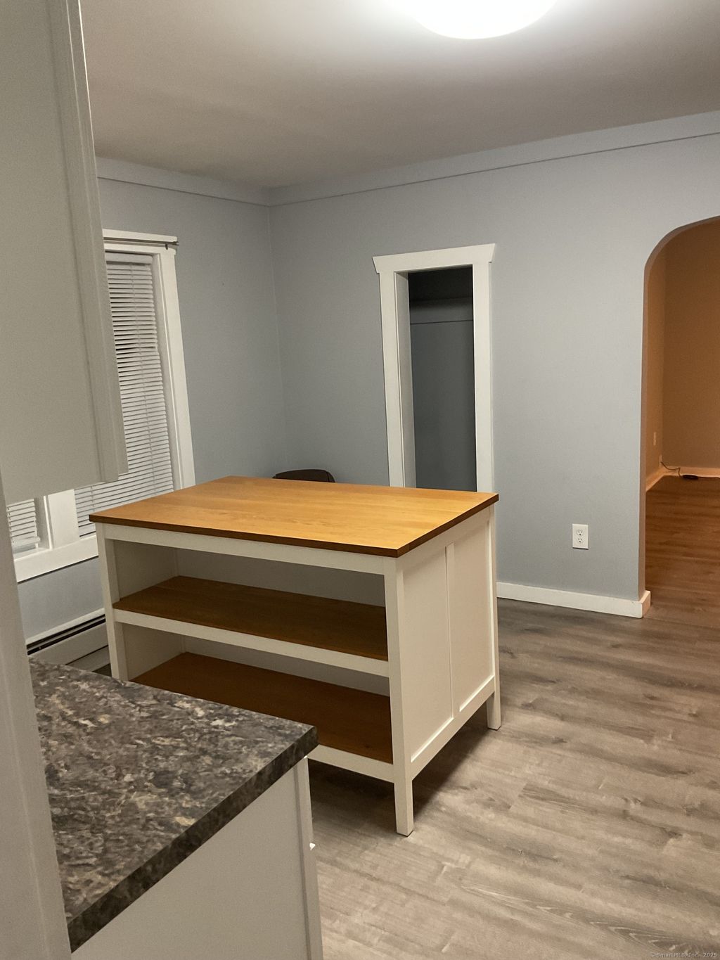 Well-maintained first-floor 2-bedroom, 1-bath apartment featuring a spacious open-concept kitchen and living area. One bedroom includes a private entrance, offering added flexibility and convenience. The unit provides in-unit washer and dryer hookups, vinyl wood flooring throughout (no carpet), and off-street parking. Bright and comfortable layout with durable finishes and easy first-floor access. Ideal for residents seeking a clean, modern, and functional living space in a well-kept property. WATER is INCLUDED and its Conveniently located near major highways for an easy commute and close to shopping and local amenities. This beautiful apartment offers a rare opportunity and is sure to be in high demand.