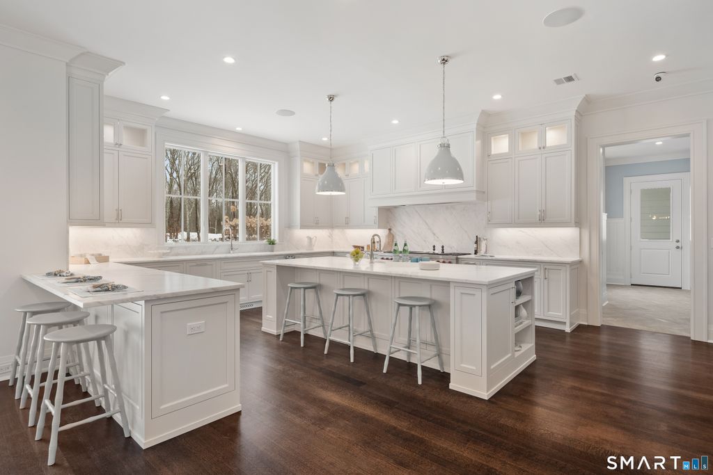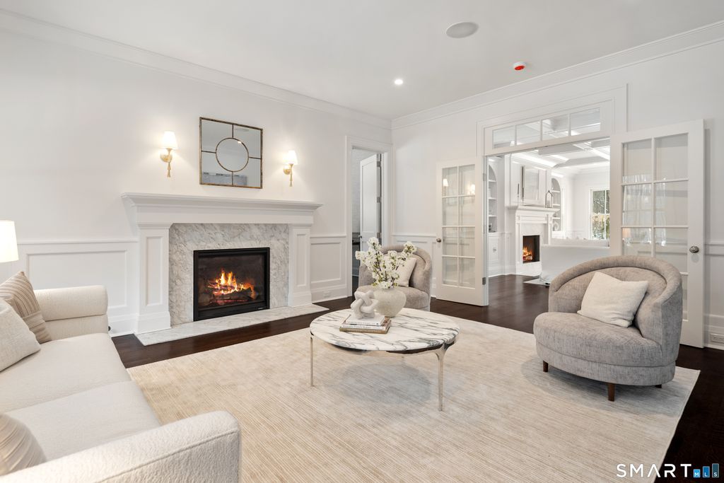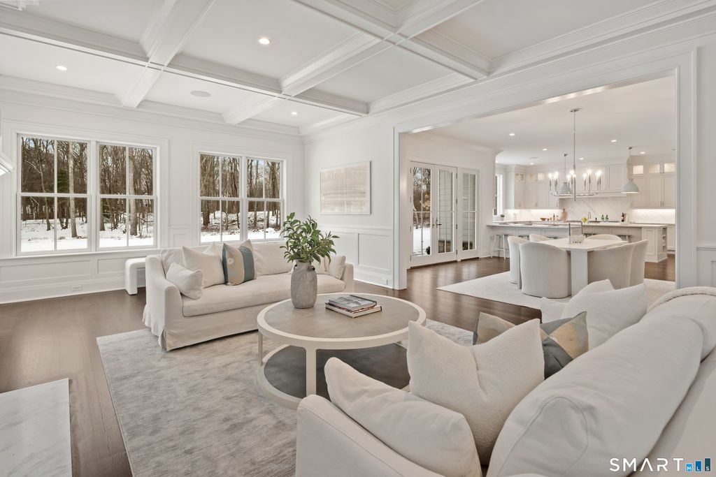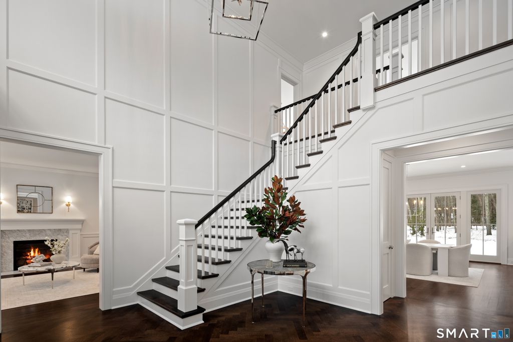 Seize a rare opportunity to own a bespoke estate in New Canaan's most coveted Ultra-Prime West Road location. Set on 6.5 private acres, this exceptional new construction by the renowned Woodcrest Homes is a triumph of transitional design, offering clean lines and unrivaled craftsmanship. The residence boasts seven magnificent ensuite bedrooms and a floor plan optimized for a sophisticated modern lifestyle, featuring a chef's kitchen that flows into a family room with elegant coffered ceiling, fireplace and built-ins. The primary sanctuary is a work of art, featuring tray ceiling and a spa-like bath with radiant heat floors-a luxury mirrored in the oversized mudroom. From the paneled library to the four roaring fireplaces and finished third and lower levels, every inch reflects the custom millwork and "stellar reputation" Woodcrest is known for. Outside, the massive acreage serves as a blank canvas with ample room for a pool, pool house, and sports court. With professional designer finishes selected by Tara Coniglio, this isn't just a house-it is a legacy estate tailored to your exact vision. NEW CONSTRUCTION just completed and ready for IMMEDIATE OCCUPANCY.