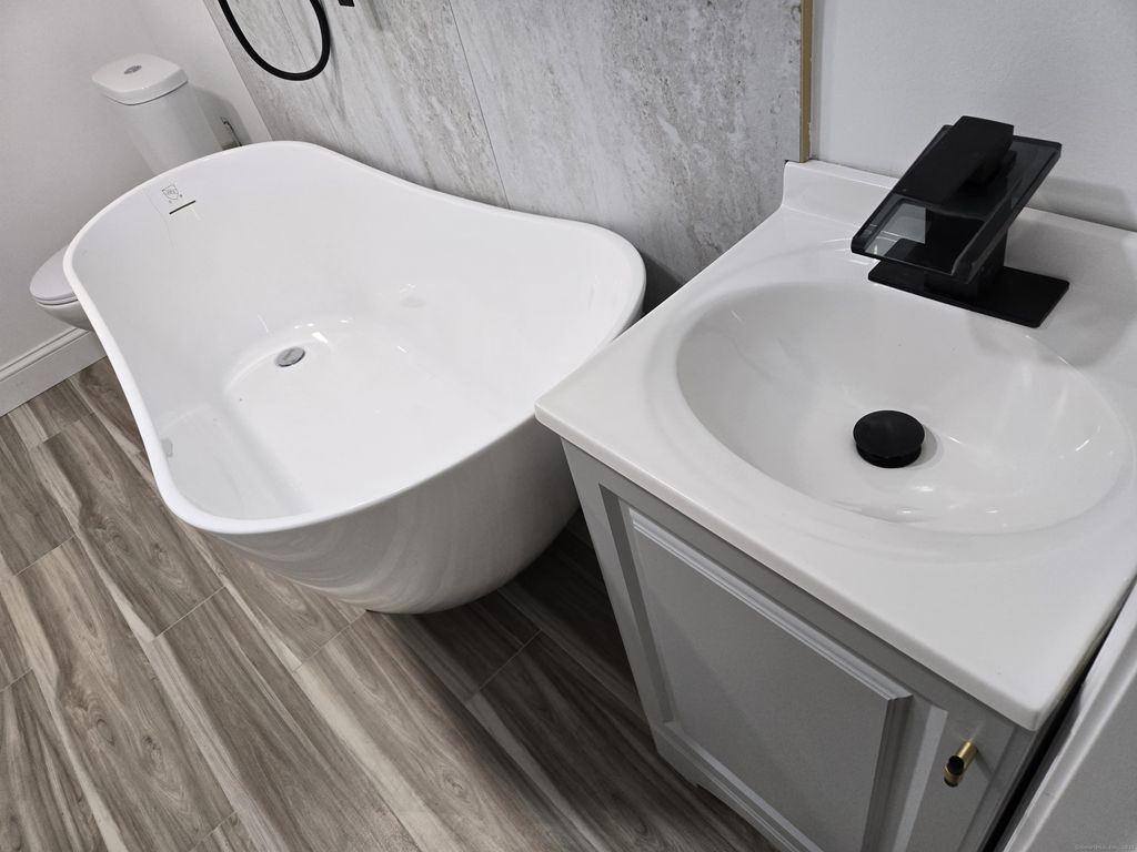 Welcome to 33 Bank St, where timeless craftsmanship meets modern luxury. This fully renovated 3 bed, 3 bath, plus 2 additional remodeled rooms masterpiece is not just a home - it's an experience! This home feels like a boutique hotel, blending solid construction with sleek finishes and smart features. The freshly painted navy-blue exterior, brand-new white vinyl fence, and crisp curb appeal make it the standout of the block. Don't choose boring. Step inside to high-end living with smart features throughout: WiFi stove, smart thermostat, video door lock, and integrated digital systems for comfort and convenience. The chef's kitchen shines with white shaker cabinets, quartz countertops, premium stainless steel appliances, and an open layout that flows seamlessly into the dining and living areas. Designer fireplace brings warmth and luxury, while 3 modern full bathrooms showcase elegant tile, glass showers, and rainfall fixtures. The finished basement offers 2 versatile additional rooms, perfect for a home gym, office, guest suite, or creative space. Outside, enjoy your large private backyard oasis complete with a patio, garden area, and recreation space ideal for basketball, a trampoline, or entertaining. There's even easy potential for a future pool or deck addition. Located on a quiet, low-traffic street right between 2 schools and a church, this home is part of an up and coming neighborhood surrounded by other remodeled homes, a safe family-friendly area with lifetime value.
