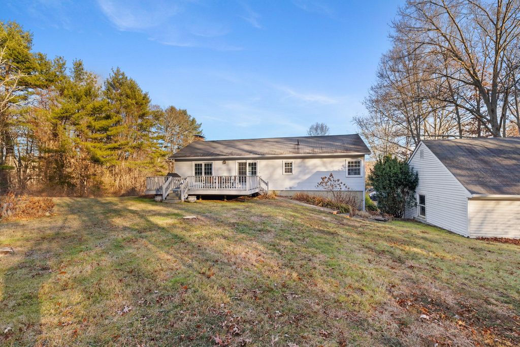 Welcome to 29 Chaffeeville Road, a charming raised ranch tucked into one of Mansfield's most peaceful natural settings. Set on nearly an acre and surrounded by trails, this home offers warm, inviting spaces starting with a sun-filled upper level featuring hardwood floors, a bright dining area with a beautiful view of backyard and forest, and a cozy living room with a fireplace. The kitchen includes Corian counters, and sliders that bring in plenty of natural light. Three comfortable bedrooms with hardwood floors and a full bath complete the upper level. The finished walk-out lower level adds valuable living space with a family room with a fireplace, a fourth bedroom, an oversized office area, another full bath and a laundry area. Perfect for an in-law suite (ADU), , playroom, gym room, hobbies, or relaxing evenings at home. Outside, the lightly wooded, level lot offers the feeling of a private retreat. The location is unbeatable-within walking distance to Nipmuck Trail, Schoolhouse Brook, Park, Mansfield Hollow Park, and Bicentennial Pond, making outdoor adventures part of daily life. Just 5 minutes to UConn's main campus, UConn Health, Natchaug Hospital, the Mansfield Community Center with its pool, and Eastbrook Mall. Only 40 minutes to Hartford or Rocky Neck State Park. If you're looking for comfort, convenience, and nature all in one place, this home delivers it beautifully.
