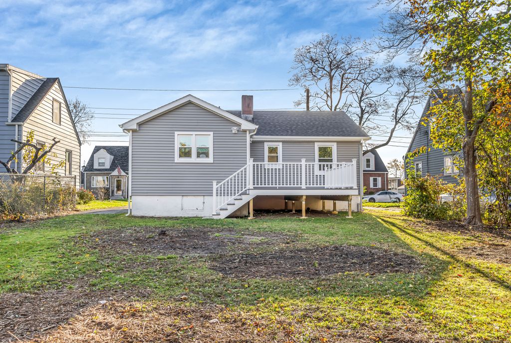 Tastefully renovated turn key home with quality craftsmanship located in desirable East Haven neighborhood. This home offers 3 spacious bedrooms, two on the main level and a third located in the finished basement. All new custom kitchen cabinets, quartz countertops, tiled backsplash, with modern hardware, fixtures and appliances.The heated finished basement adds additional living space. The family room has custom built in shelving and recess lighting. There's an additional storage room and laundry room. Relax on the maintenance free deck overlooking large leveled and private backyard. Many new updates including new roof, HVAC, central air, new windows and all new doors. Truly a must see!