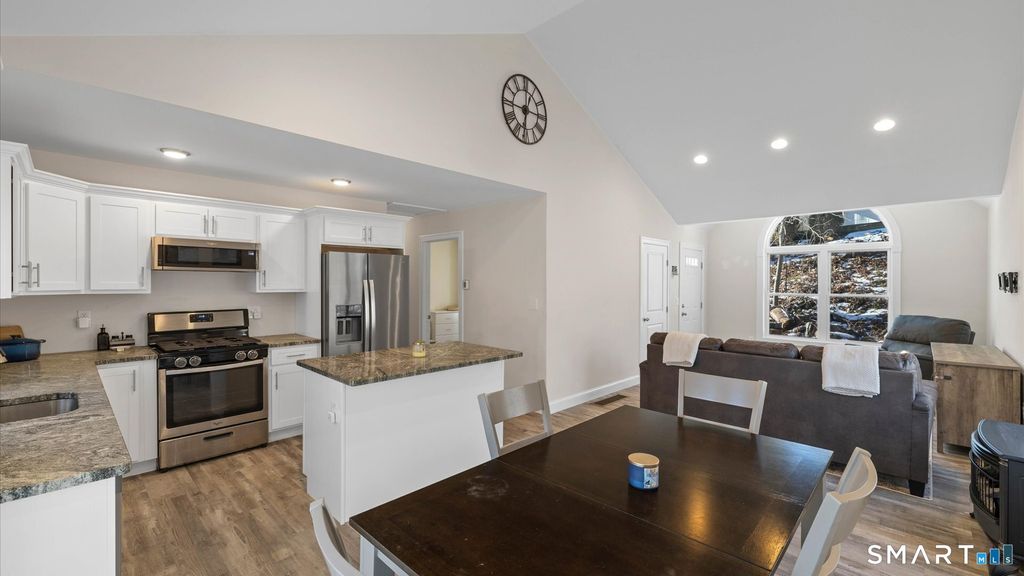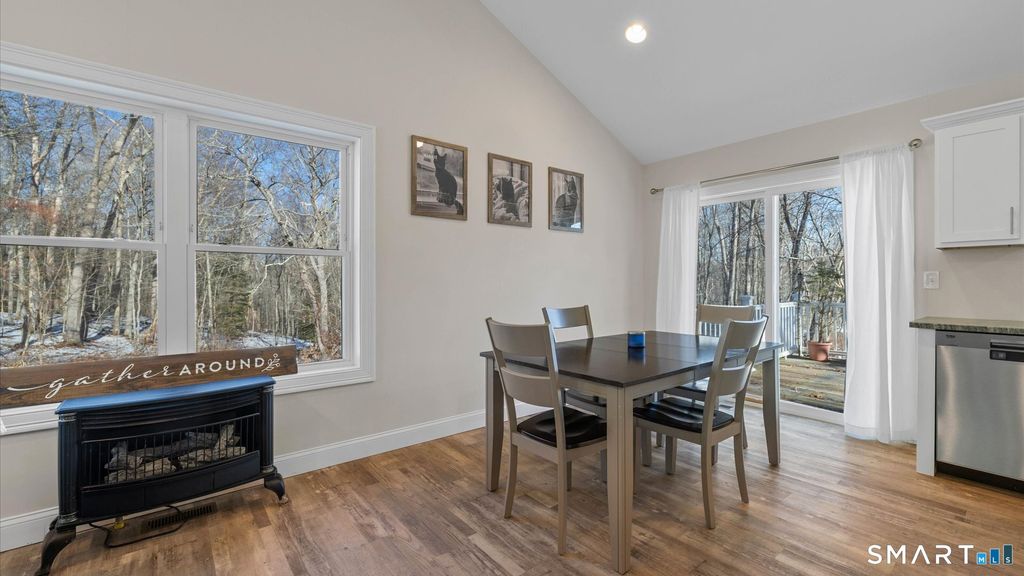 Welcome to 149 Colchester Avenue, a modern 3-bedroom, 2-bath home built in 2022, offering privacy, flexibility, and true move-in-ready condition in East Hampton. Set on a wooded lot just under an acre, this home features an open main-level layout with vaulted ceilings, luxury vinyl plank flooring throughout, and a bright kitchen with granite countertops, white cabinetry, and appliances installed with the home. The primary bedroom includes a private full bath, while the additional bedrooms are well-sized and filled with natural light. The full basement is heated and cooled with high ceilings, providing excellent storage today and clear potential for future finished space. Outdoor living includes a back patio and deck overlooking the wooded yard, creating a private and peaceful setting. Conveniently located near Route 66 with easy access to local amenities, this home offers modern construction, low-maintenance living, and room to grow - a rare combination in today's market.