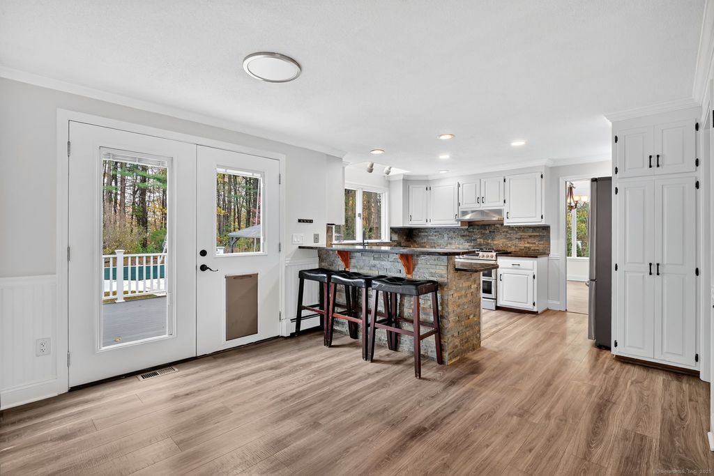 **An Entertainer's Dream!** Welcome to 129 Hollow Brook Road, a MOVE-IN READY five-bedroom Colonial in Windsor's sought-after Poquonock neighborhood. Designed for hosting and comfortable living, this home offers over 3,400 sq ft of versatile space, including a private first-floor wing ideal for multi-generational living, guests, or extended stays. The heart of the home is a beautiful kitchen featuring granite countertops, a double breakfast bar, and Samsung appliances. Step through the sliders to a custom 18' x 40' Trex deck overlooking your personal resort: a heated in-ground Gunite pool and hot tub, outdoor kitchen with built-in grill (direct propane), and a fully fenced backyard- perfect for summer gatherings, and barbecues. The first-floor wing includes its own bedroom, full bath, and dual living areas, offering privacy and comfort for multi-generational households. A second staircase leads to a spacious 22x22 bonus room-ideal for a gym, game room, or private retreat. The renovated primary suite features cathedral ceilings, a skylight, walk-in closet, and updated bath. Come see why this home is truly one of a kind! Other recent improvements: 2021: New custom vinyl privacy fence installed. 2022: New hot water heater. 2024: EV charger installation; pool and hot tub retiled. 2025: Professionally painted interior. 2025: Boiler and Central AC recently serviced.