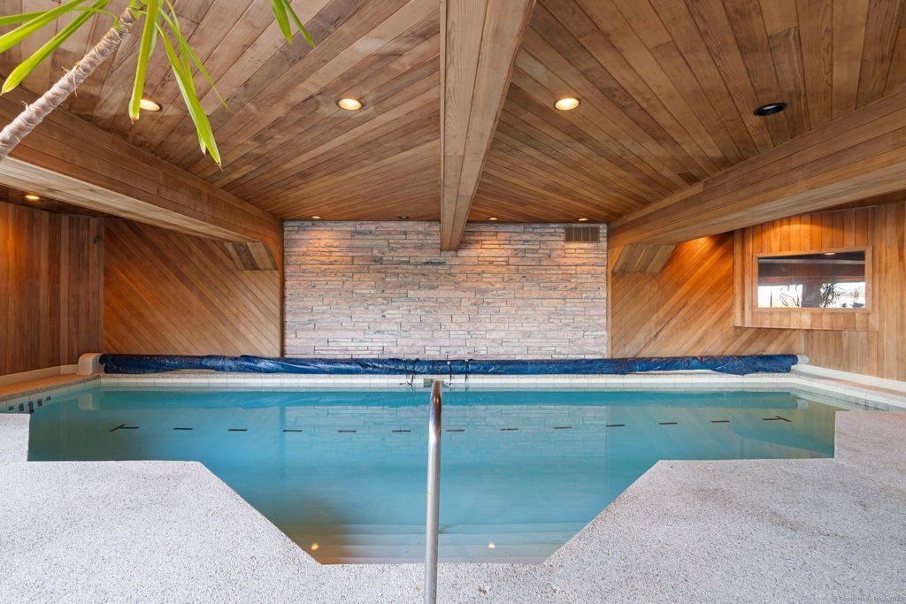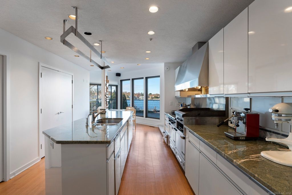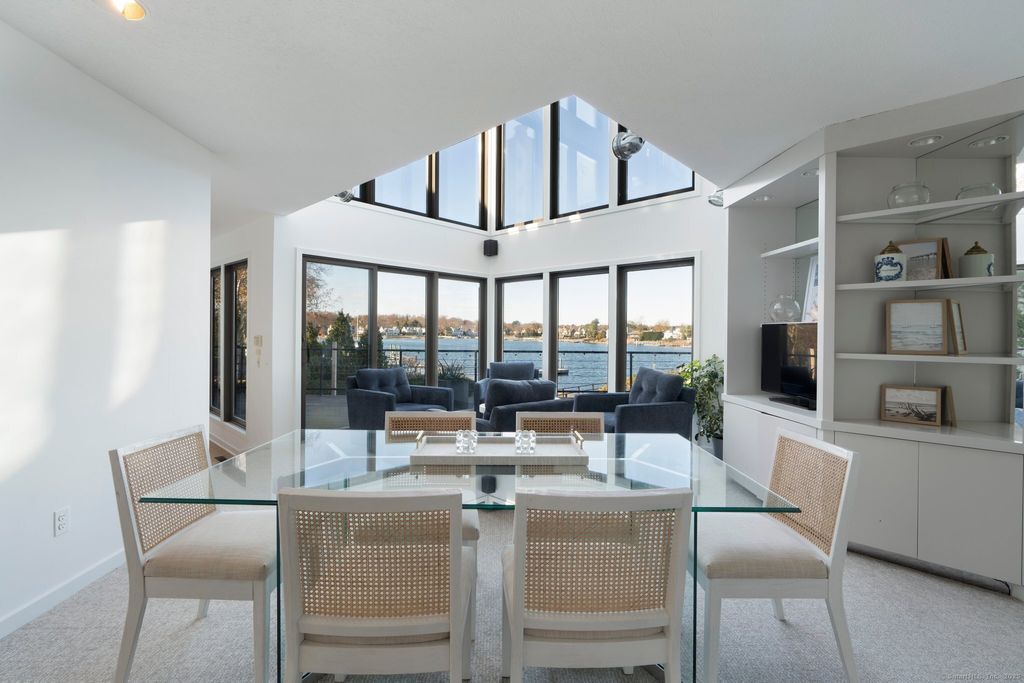 Custom-built waterfront retreat on Bermuda Lagoon is an extraordinary find. Lovingly maintained and never flooded, 100 feet of private beach, a deepwater dock, and breathtaking views of Long Island Sound and Bermuda Lagoon. Designed for year-round enjoyment, the home's soaring ceilings and expansive windows perfectly frame the stunning water vistas. Imagine savoring sunsets from the wraparound deck or cozying up by the fire as snow gently falls. Two dedicated offices, one on the main floor with a full bath, and a second in the primary suite with a private deck and panoramic Sound views provide ideal work-from-home solutions. The gourmet kitchen, complete with an industrial stove, is a chef's dream. The primary suite, a true haven, features a private deck, generous walk-in closets, and a spa-like bath. Three additional bedrooms, two with charming lofts, offer ample space for family and guests. The lower level, an entertainer's paradise with a fireplace warmed family room and a wellness oasis, recently upgraded 42-foot indoor pool, sauna, steam room, and gym. This rare waterfront sanctuary, complete with a full-house generator, offers a unique blend of natural beauty, luxurious living, and enduring tranquility.