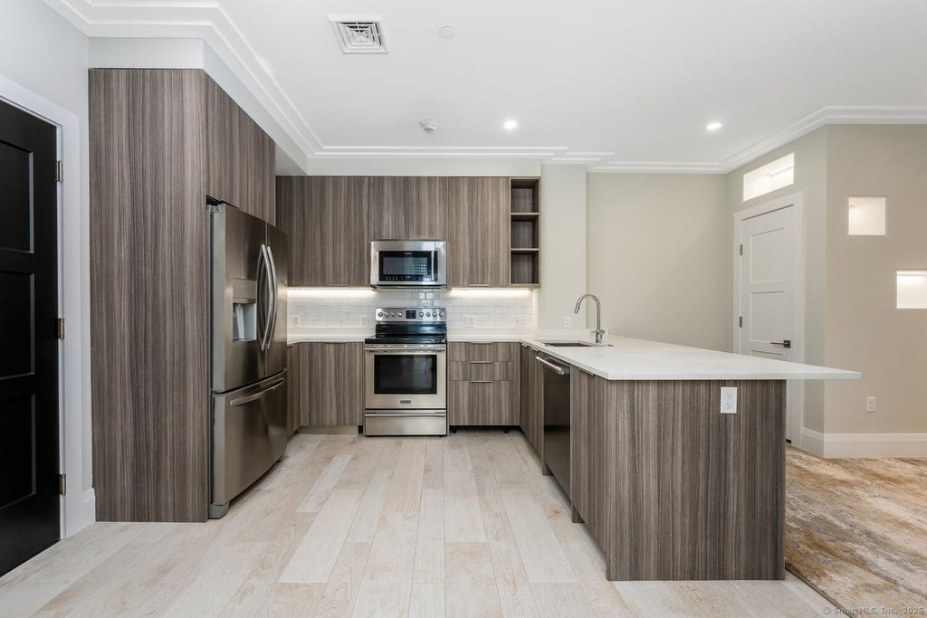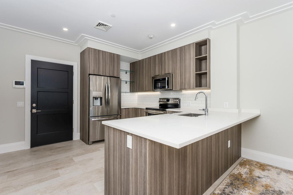 Welcome to Bronson House, Greenfield Hill's premier luxury rental! This brand-new, two-bedroom, 2.5-bath apartment offers serene privacy away from downtown's hustle. Thoughtfully designed with cutting-edge SMART home technology, enjoy a maintenance-free, turnkey lifestyle. The bright, open-concept living and dining area connects seamlessly to a fully equipped kitchen and in-unit laundry. The primary suite on the main level provides easy one-floor living, while upstairs features a spacious second bedroom, full bath, walk-in closet, and a versatile sitting room or home office. An elevator services the 2nd floor, and Unit 6 has its own private rooftop deck with spectacular views-perfect for relaxation or entertaining. Live steps from Greenfield Hill's best amenities: Greenfield Hill Cleaners, Greenfield Hill Liquors, BONDA restaurant, plus BE Chocolat for delicious coffee, desserts, and ice cream. Three parking spaces come with each unit. Don't miss this exceptional rental opportunity-schedule your tour today!
