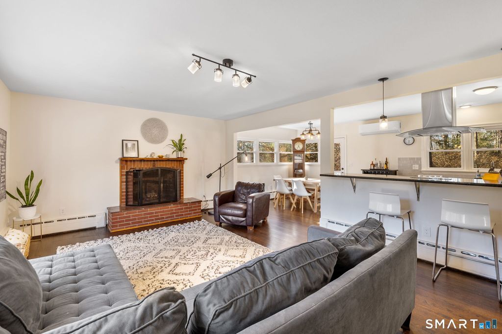 Set on a picturesque lot in Canton's Secret Lake Beach community, this updated split level blends timeless character and modern efficiency. Sunlight pours through the bay window in the living room, highlighting hardwood floors and a classic fireplace that anchors the space with warmth and charm. The open layout flows into the dining area and beautifully updated kitchen with granite counters, breakfast bar, stainless steel appliances, ideal for everyday living and entertaining. The upper level hosts the primary bedroom with its own full bath and walk-in closet, along with three additional bedrooms and another full bath, providing flexibility for guests or home office space. The lower level offers a spacious family room with custom French doors and flexible space for work or relaxation. The heated garage offers a great space to enjoy hobbies and projects. The unfinished basement provides future expansion potential. Behind the scenes, extensive improvements provide comfort and peace of mind. A newly added central air and Bosch ductless mini splits installed in 2022, new attic insulation and baffles, a Roth double walled oil tank, Leaf Relief gutter guards added in 2024, updated landscaping, tree removal, and a sump pump with drainage system. Enjoy private access to Secret Lake, as well as convenient access to shopping and dining. This move-in ready home combines comfort, efficiency, and a beautiful natural setting!