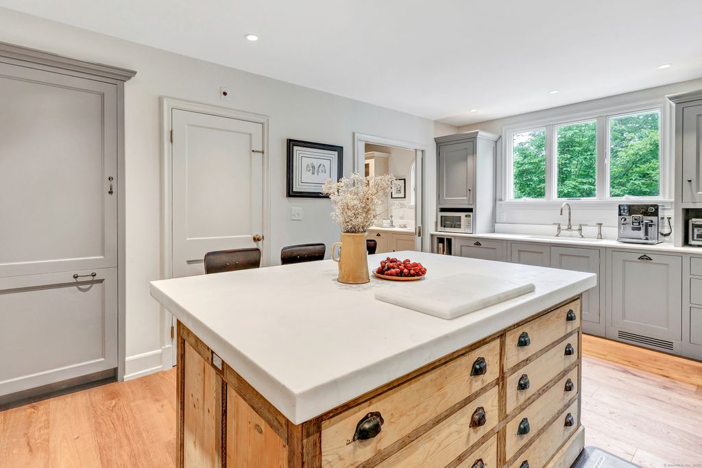 Located in prestigious Greens Farms, this European-inspired Colonial captures the timeless romance of the countryside in a coveted Westport location. Enter through private gates into a tranquil sanctuary, where meadow views & the soft outline of the home's romantic arched windows set a tone of understated elegance. The warm and inviting interiors offer flexibility & ideal flow, with a formal living & dining room, a magical sunroom with views to the secluded side yard, & a cozy family room perfect for gathering at the end of the day. The elevated country kitchen is a masterpiece of craftsmanship...Calcutta marble, bespoke cabinetry, top-tier appliances, & an integrated pantry and coffee/wet bar blend beauty and functionality. A first-floor bedroom option w/ full bath offers flexibility. Upstairs, the Primary Suite is a serene retreat w/dressing area & luxurious full bath. The en-suite Guest Room boasts a private terrace & Two Additional Bedrooms share a Full Bath. An expansive covered stone terrace offers the perfect indoor-outdoor living experience. Dine al fresco, relax around the fire pit, or entertain family & friends. With open meadow views, the backyard feels like a natural playground for all ages-offering space to roam, explore, and connect. Whether you dream of building a brand new home in a perfect setting, or adding a pool, barn, tennis court or gardens, there's room for it all. Unsurpassed location in coveted Greens Farms, close to town, beaches & train!