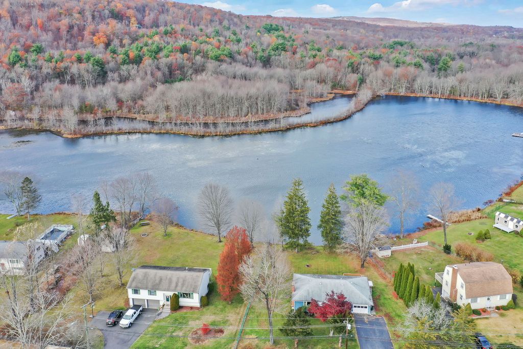 Wake up each morning to tranquil water views in this charming and affordable walkout ranch nestled on the shores of Lake Como. Whether you're seeking a cozy starter home, a downsized lifestyle, or a relaxing weekend retreat, this waterfront gem offers it all. Step outside your back door to enjoy kayaking, canoeing, fishing, ice fishing, or simply watching the local wildlife in their natural habitat. Inside, the main level features a spacious living room with a fireplace and pellet stove, and a generous kitchen that flows seamlessly into the dining area. The primary bedroom overlooks the lake, offering a relaxing start and end to your day. A full hallway bath includes a tub/shower and ample storage. A heated mudroom connects the 1-car garage to the kitchen and opens to the back deck-ideal for a future laundry area if single-level living is desired. Downstairs, the partially finished walkout basement includes a large family or rec room with a second pellet stove, a half bath, and laundry area. The unfinished portion provides excellent storage and includes a back garage-perfect for boats, gear, or workshop space. Additional features include a walk-up attic for easy-access storage and a spacious yard ideal for pets, play, and outdoor gatherings.