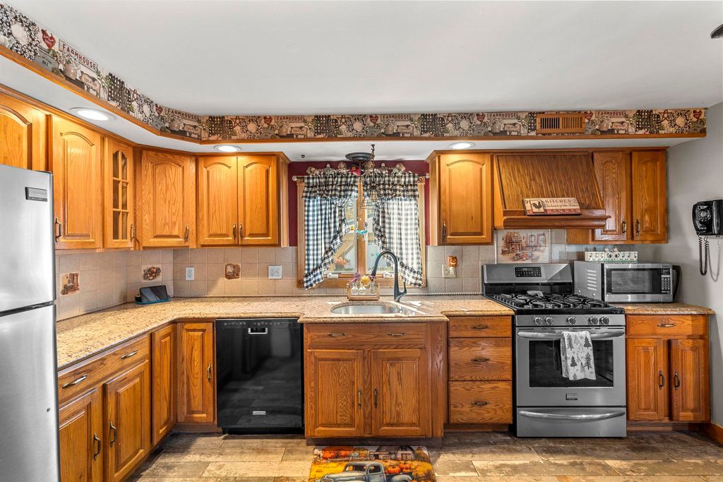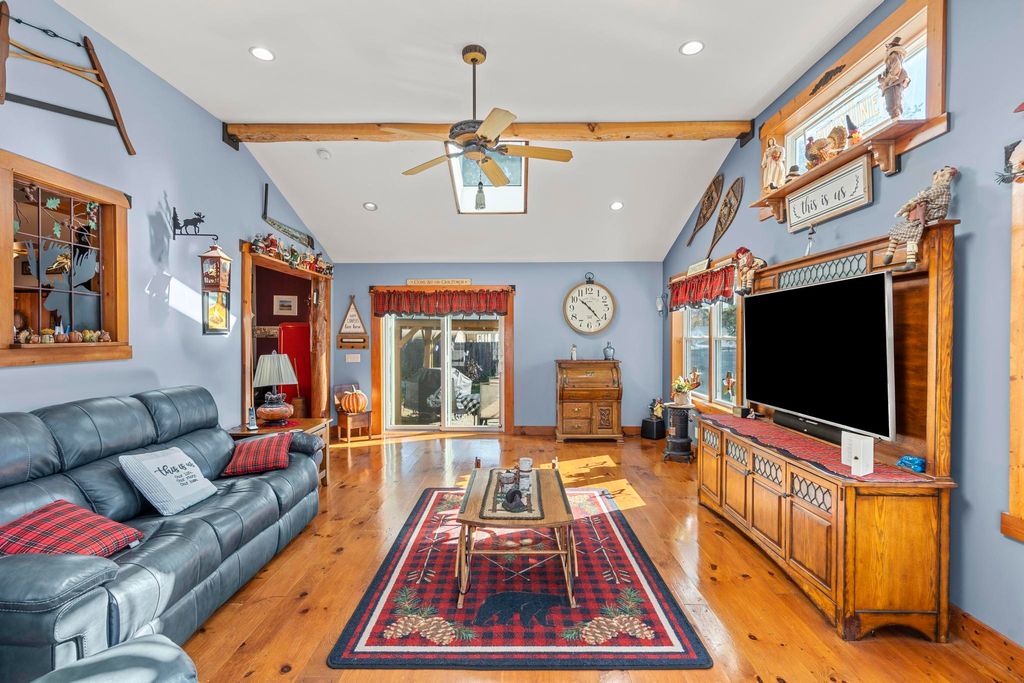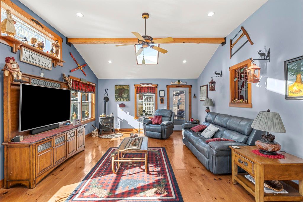Thoughtfully cared for inside and out, this spacious and inviting home is filled with charm throughout, offering a country-lodge vibe-a blend of farmhouse warmth and rustic character. It provides a warm, comfortable atmosphere with thoughtful details that make it ideal for relaxation, gatherings, and everyday living. The open dining area features rich wood floors, exposed beams, stylish accents, and a gas stove that together create an appealing and welcoming space. The kitchen provides a comfortable layout with a breakfast bar and an easy flow to the dining area, ideal for both casual meals and entertaining. The bright living room includes vaulted ceilings, exposed beams, and walk-out sliders that bring in abundant natural light. The main level provides outstanding flexibility with a spacious family room that opens to the yard, patio, and gazebo-perfect for relaxing or hosting gatherings. A convenient laundry room and a second family room with an energy-efficient, thermostat-controlled pellet stove add comfort and functionality. The upper level features a private bedroom suite, with three additional bedrooms and a full bath located above the main living area. The finished lower level provides versatile space for a playroom, home office, hobby room, or media area. Ideally located near Milford beaches, major highways, train, restaurants, and shopping for convenient commuting and everyday living.